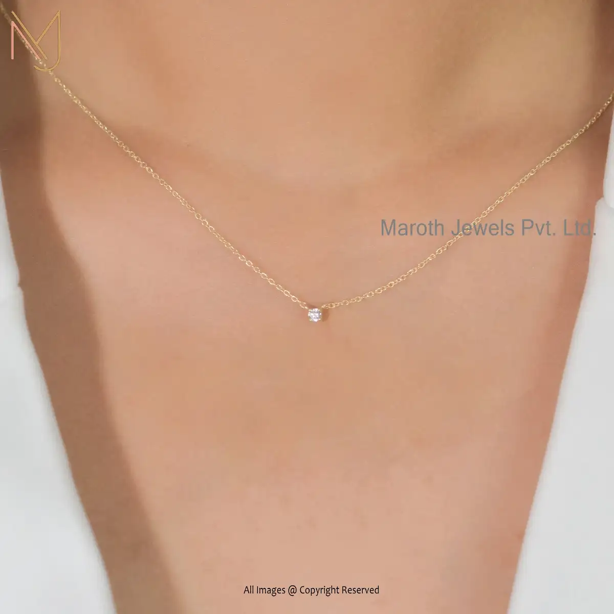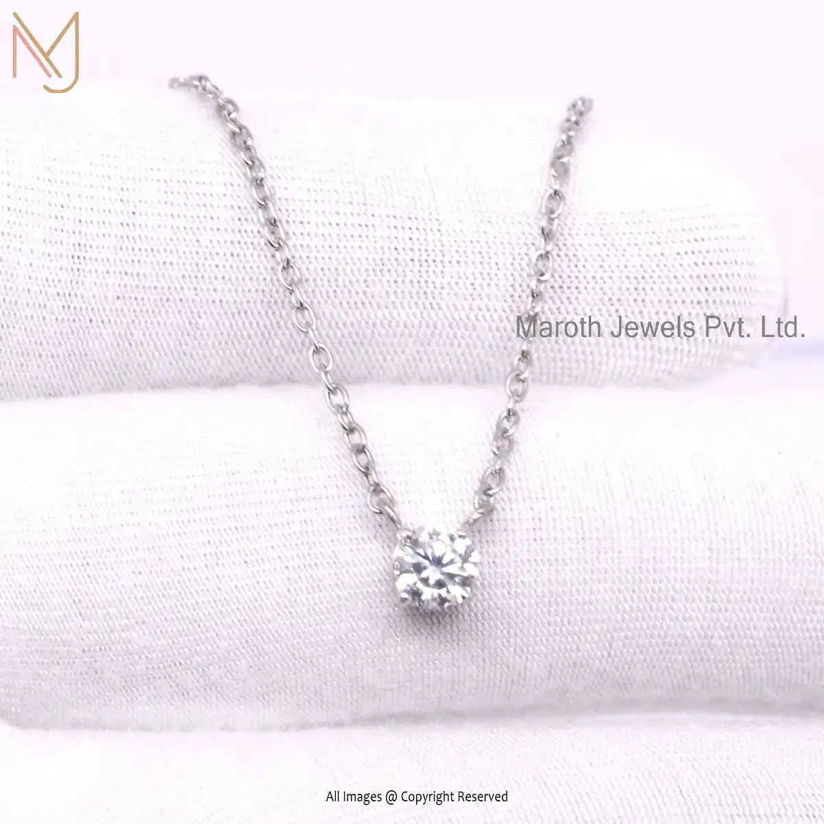Private Label 925 Silver White Gold Plated Moissanite Dainty Necklace