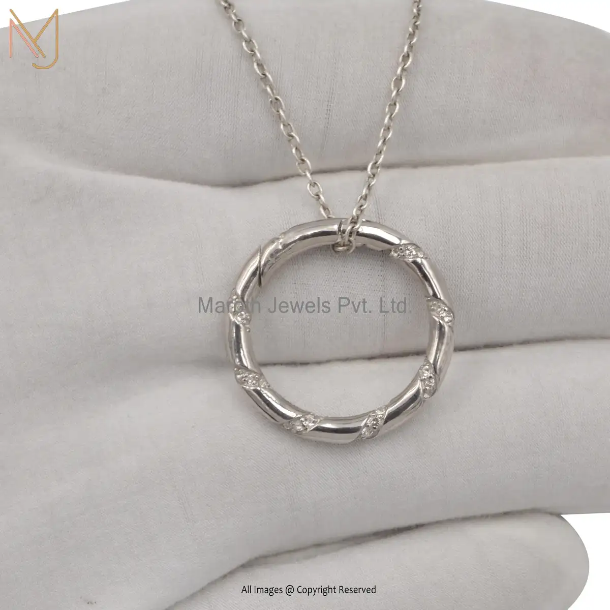 Private Label 925 Silver White Gold Plated & White Topaz Round Enhancer