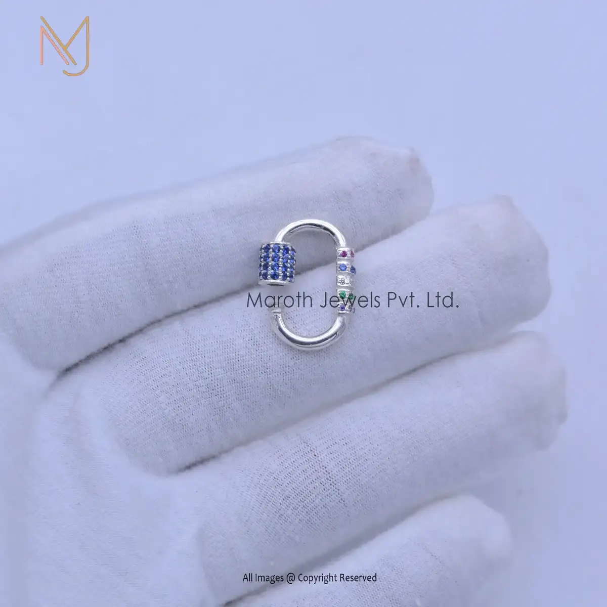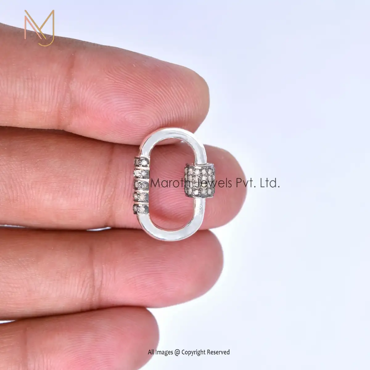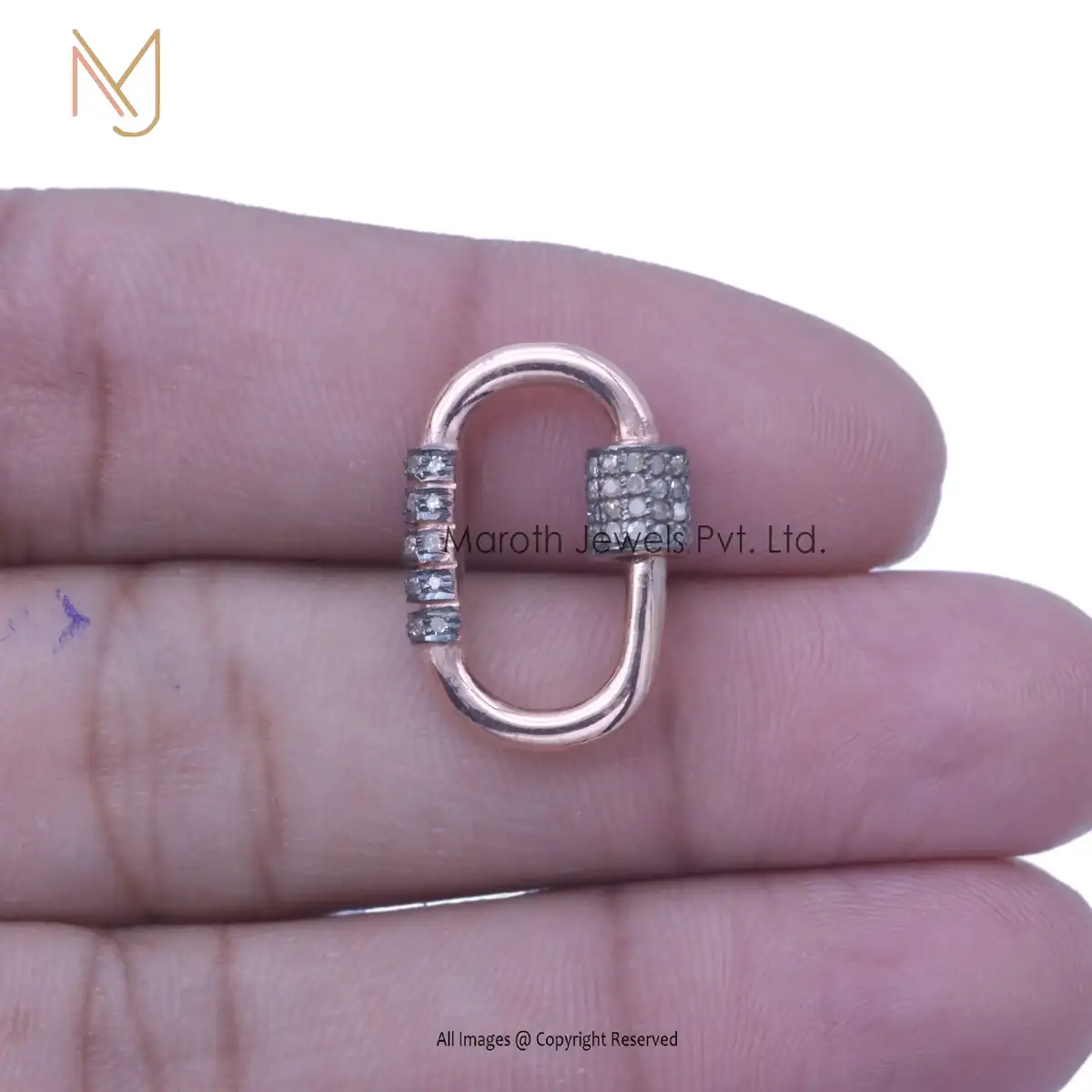 Private Label 925 Silver Yellow Gold And Black Rhodium Pave Diamond Carabiner Lock