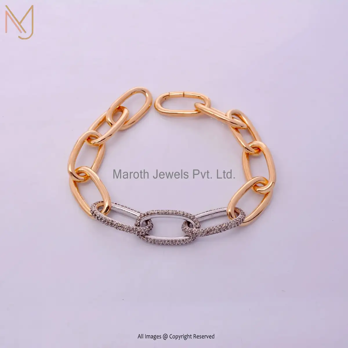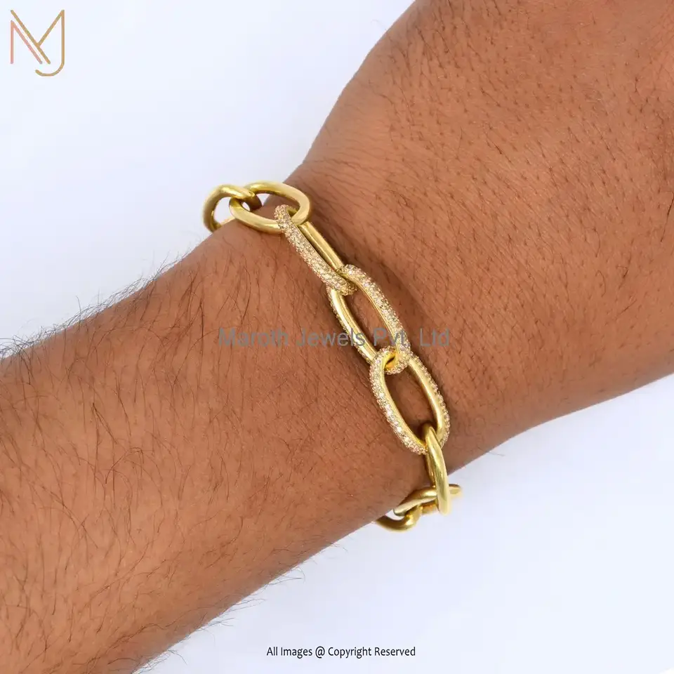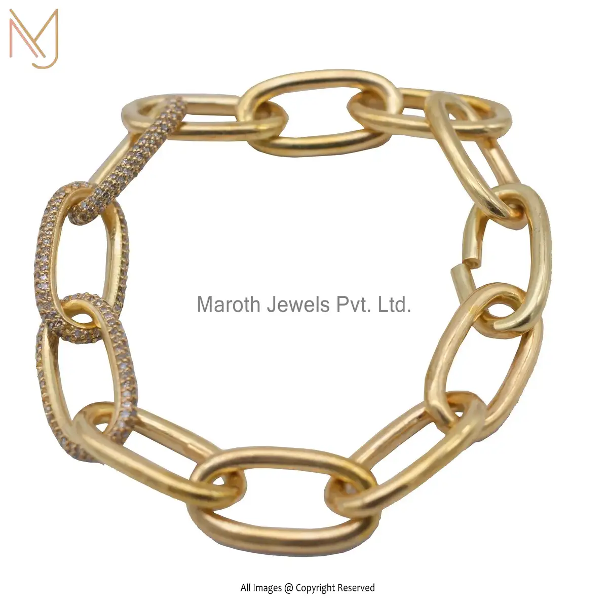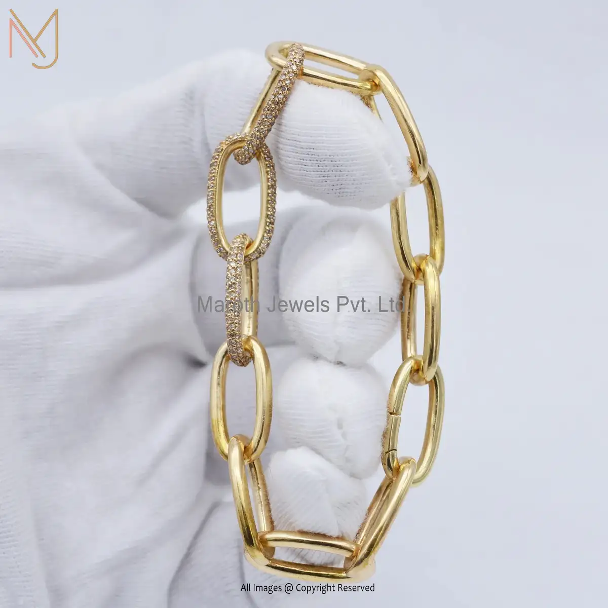 Private Label 925 Silver Yellow Gold Plated Three Pave Diamond Link Bracelet