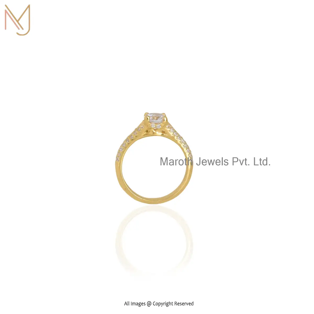 Private Label 925 Sterling Silver Yellow Gold Plated White CZ Ring