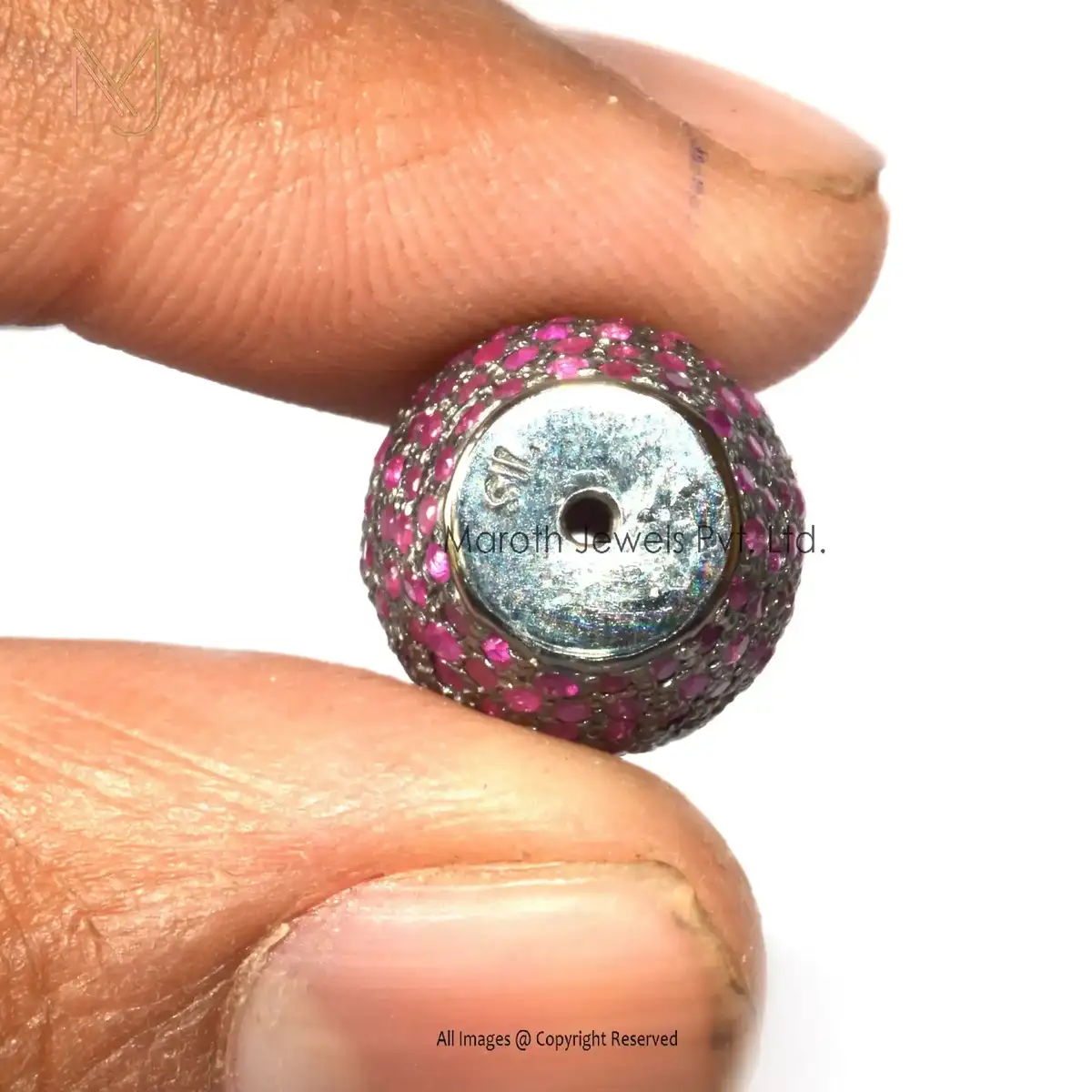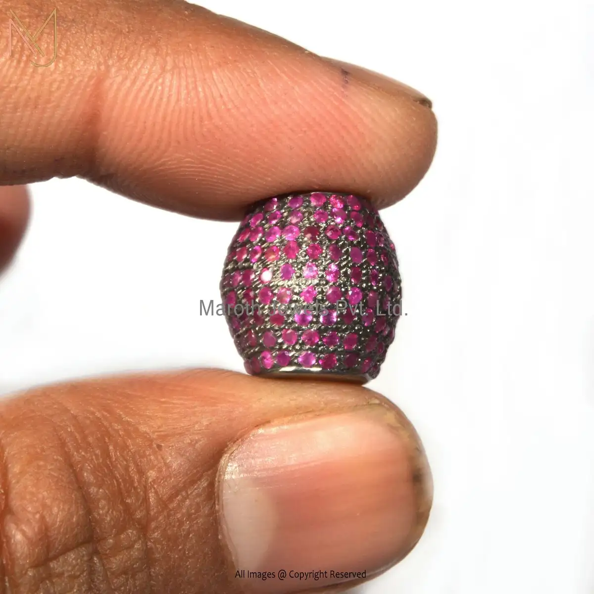 Private Label 925 Sterling Silver Ruby Gemstone Round Beads Connector Finding Jewelry