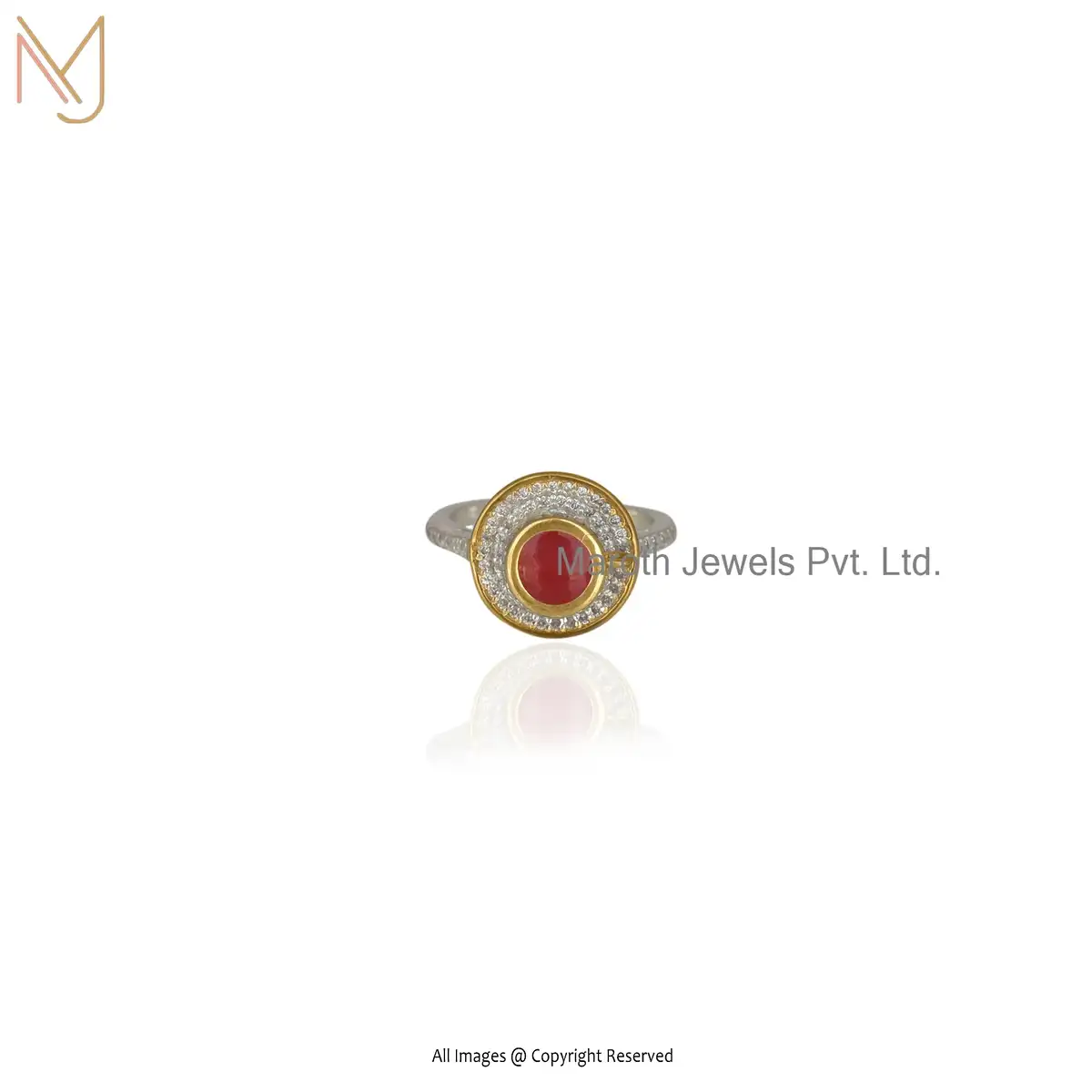 Private Label 925 Sterling Silver Yellow Gold Plated White CZ and Red Enamel Tea Lovers Ring