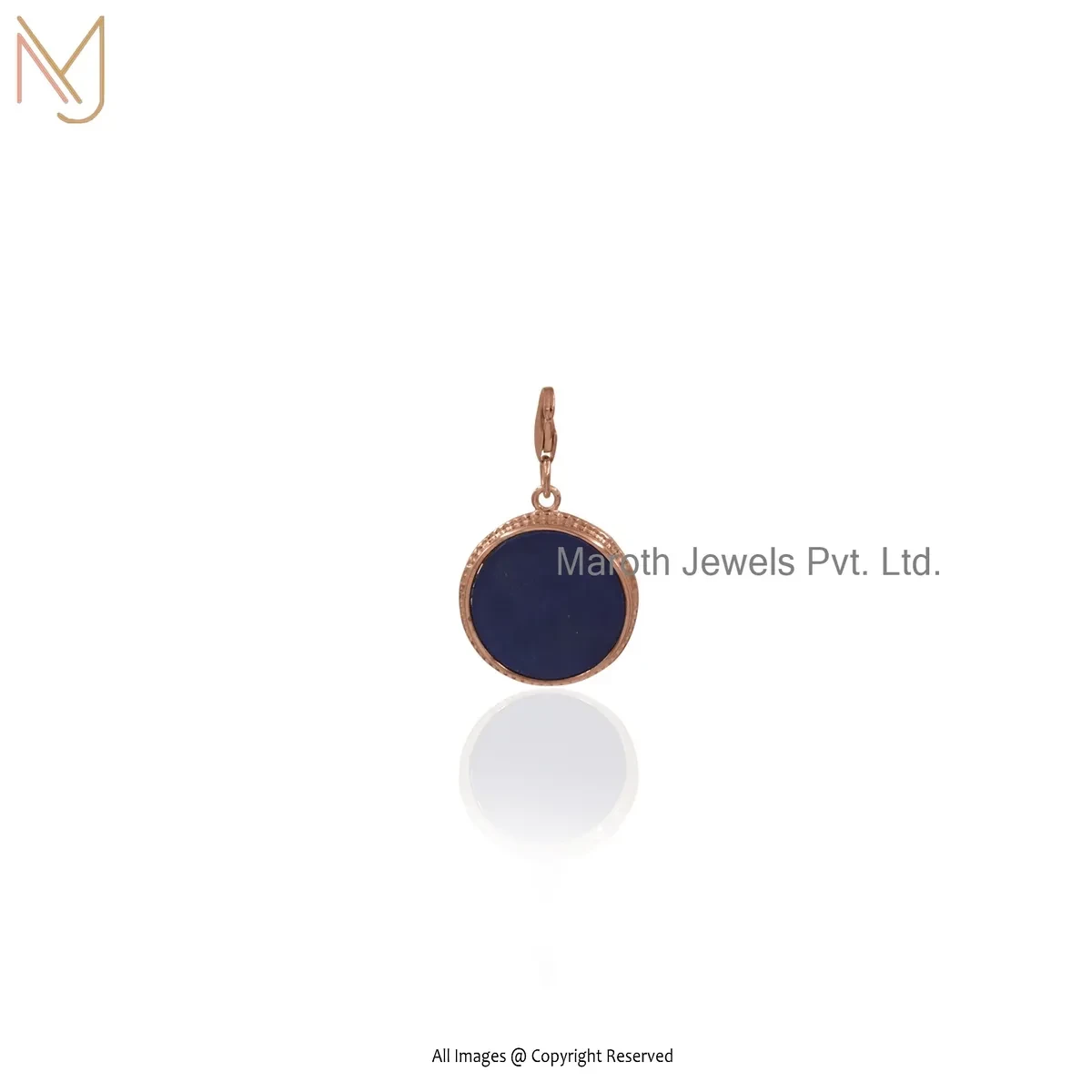 Private Lable 14K Rose Gold Cubic Zircon & Lapiz Lazuli Gemstone Compass Charm Pendant