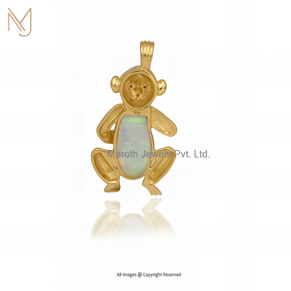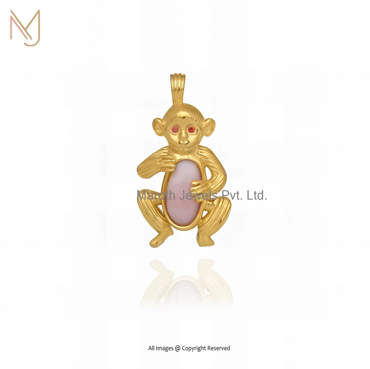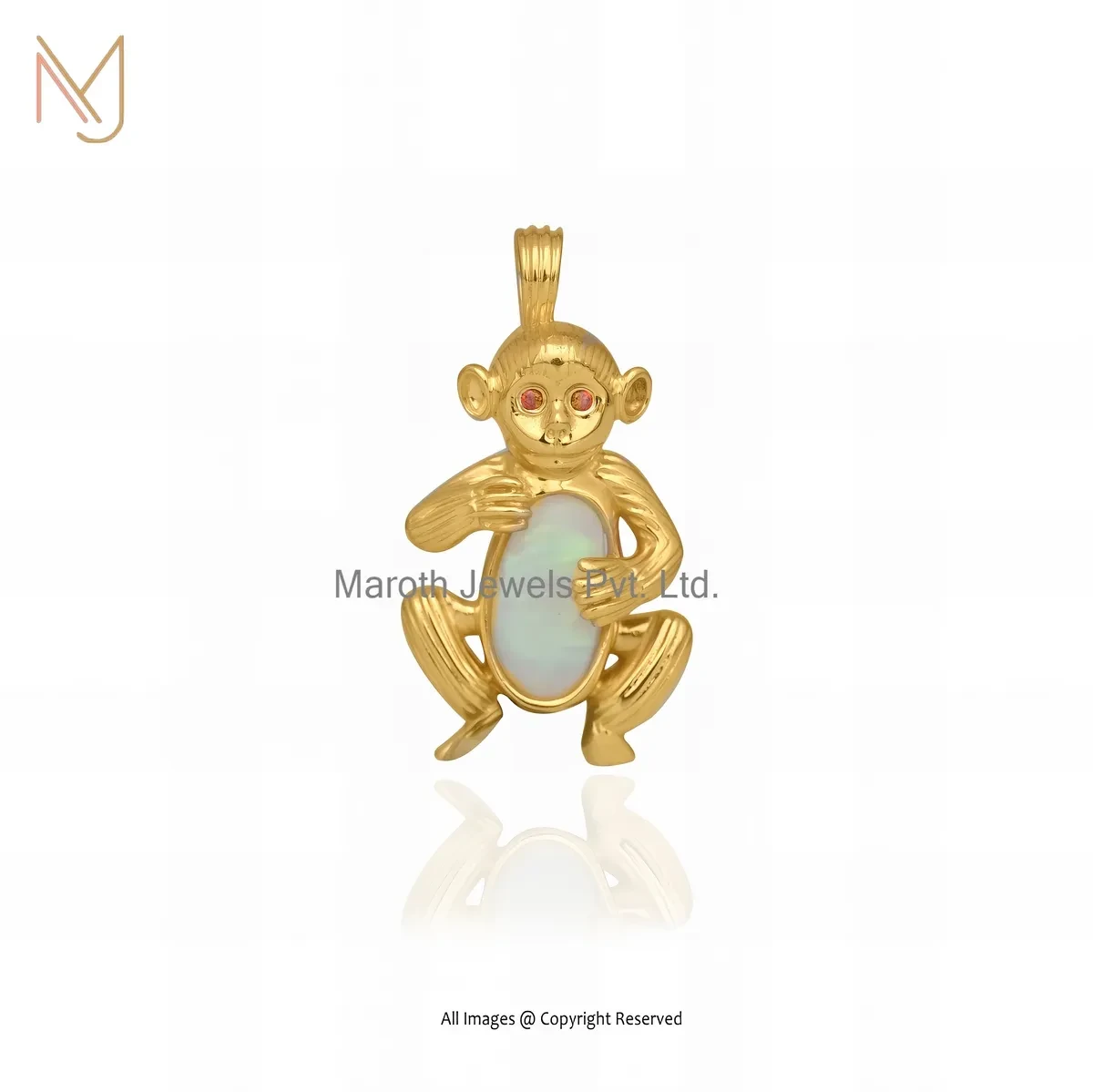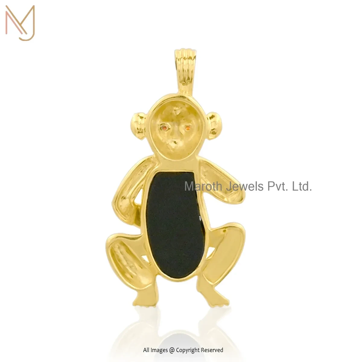 Private Lable 14K Yelllow Gold Garnet & Black Onyx Gemstone Monkey Pendant