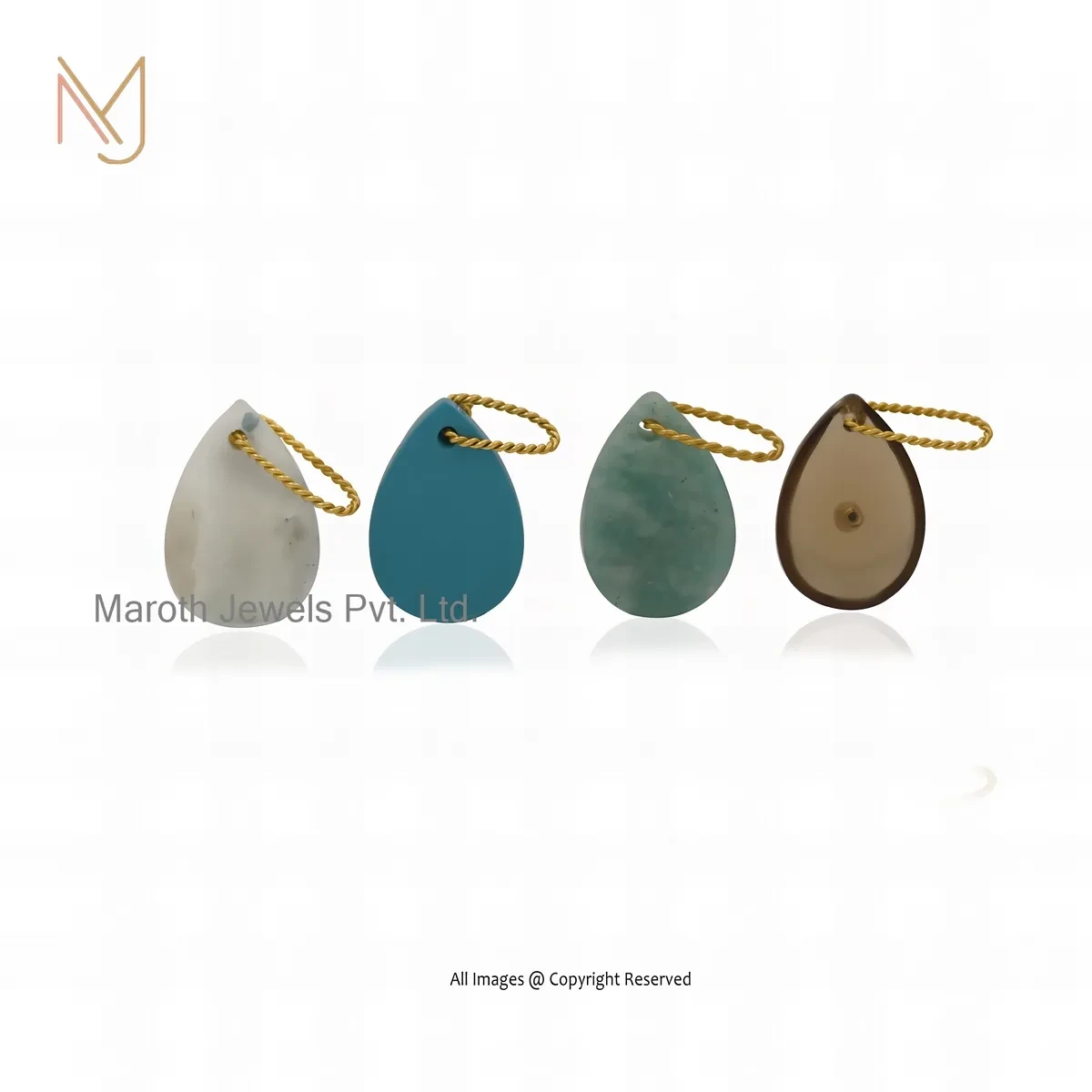 Private Lable 14K Yellow Gold Amazonite And Turquoise Drop Pendant