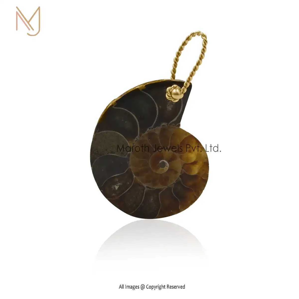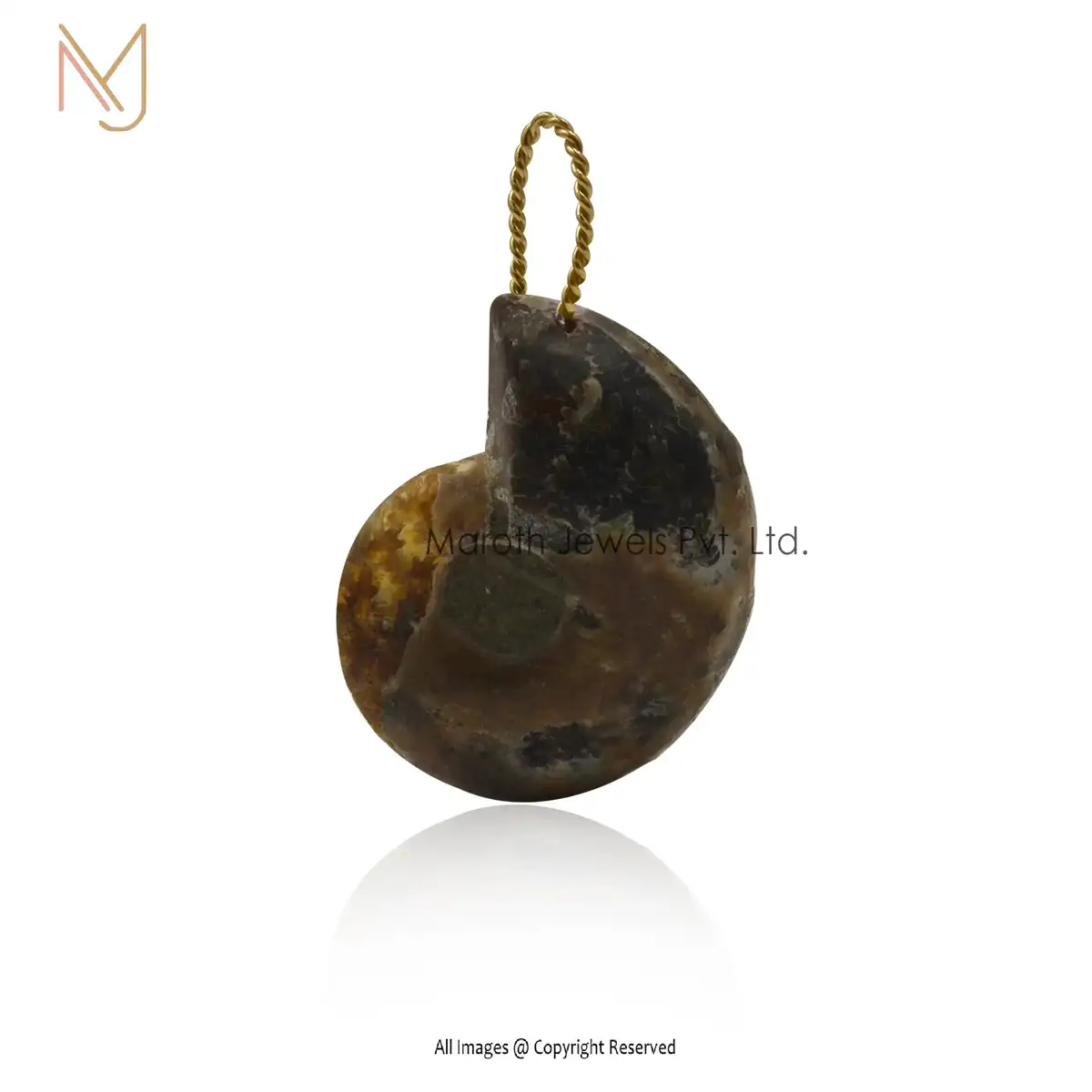 Private Lable 14K Yellow Gold Ammonite & Moisssanite Shell Fossil Stone Pendant