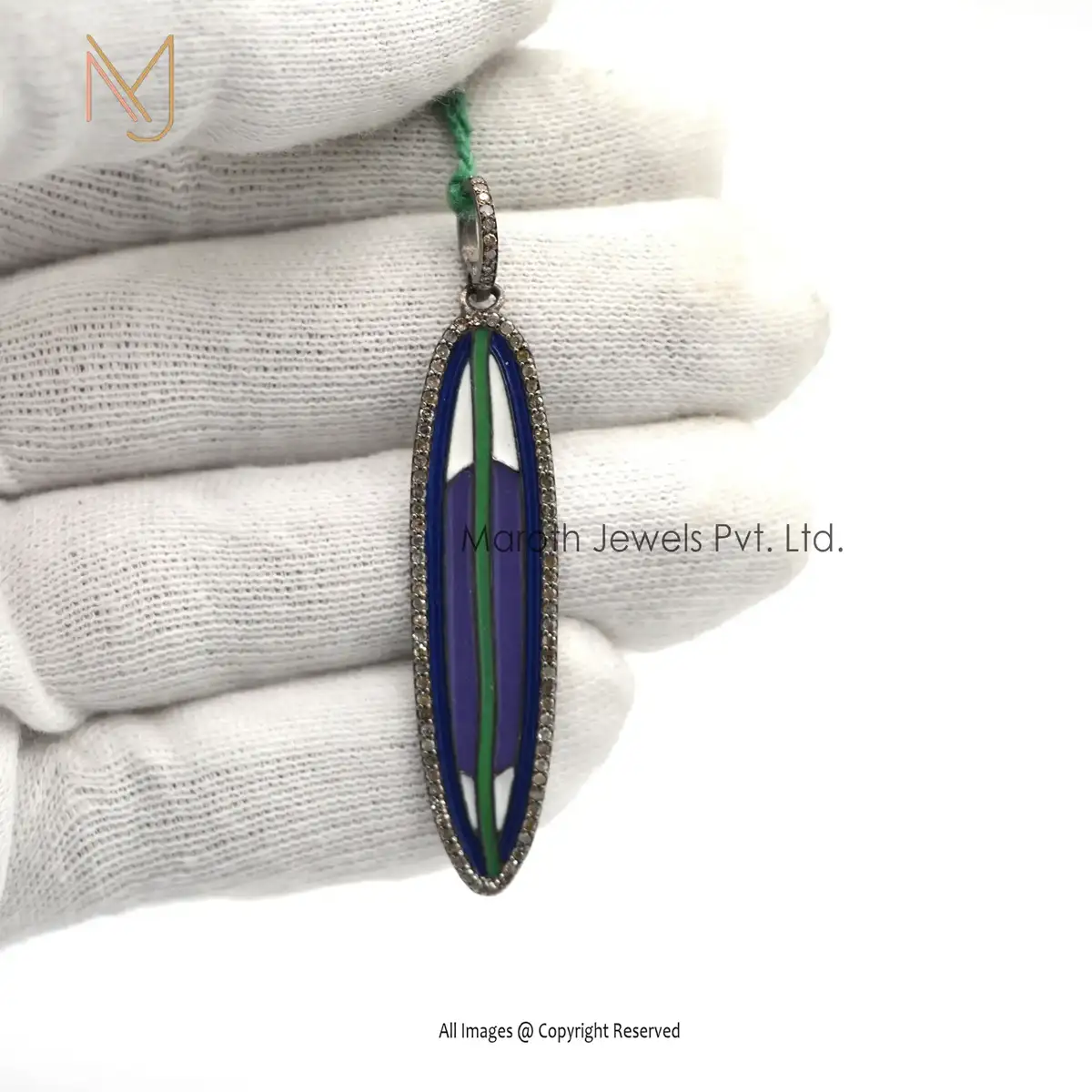 Private Lable 14K Yellow Gold Black Multi Enamel Diamond Pendant Jewelry