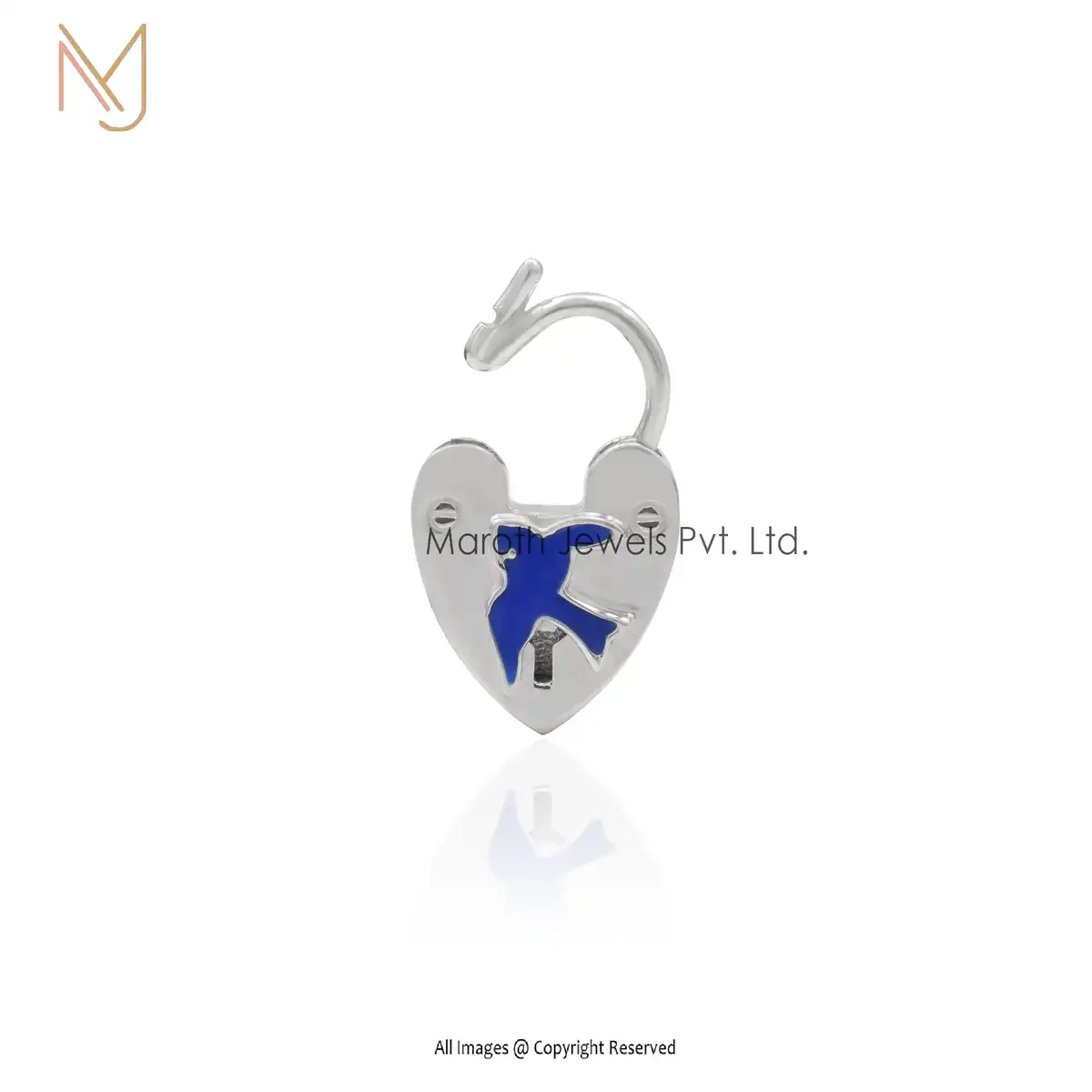 Private Lable 14K Yellow Gold Blue Enamel Pedlock Handmade Jewelry