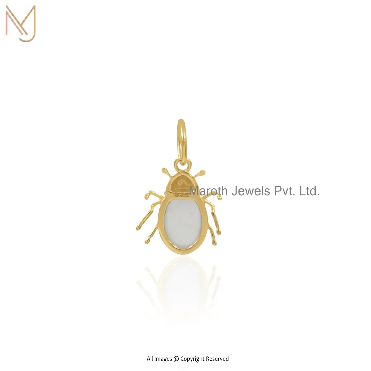 Private Lable 14K Yellow Gold Chalcedony Gemstone Beetle Charms Pendant