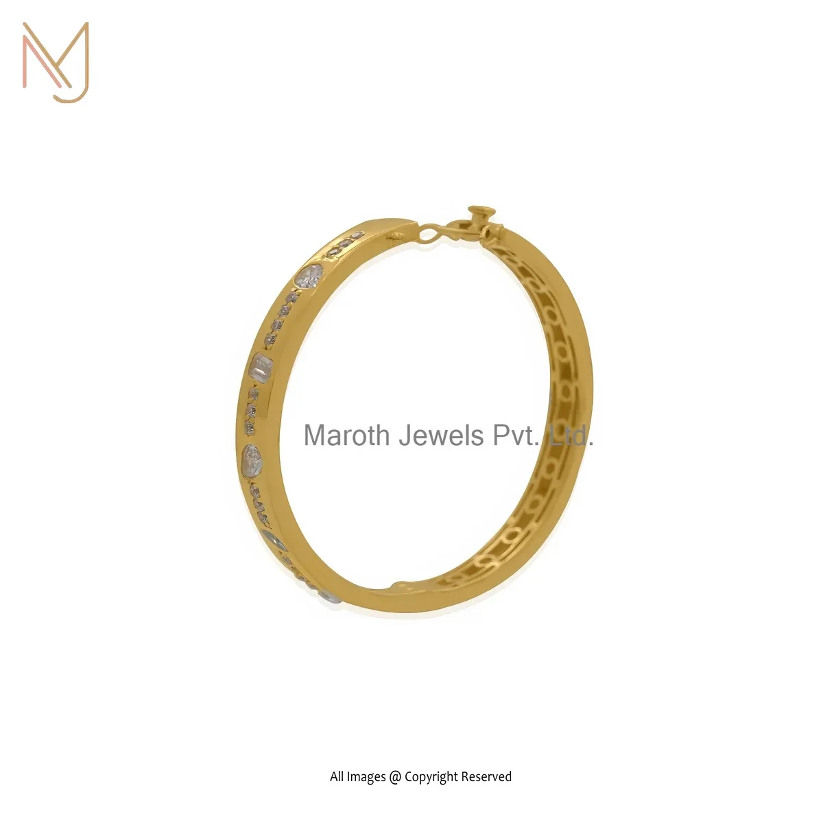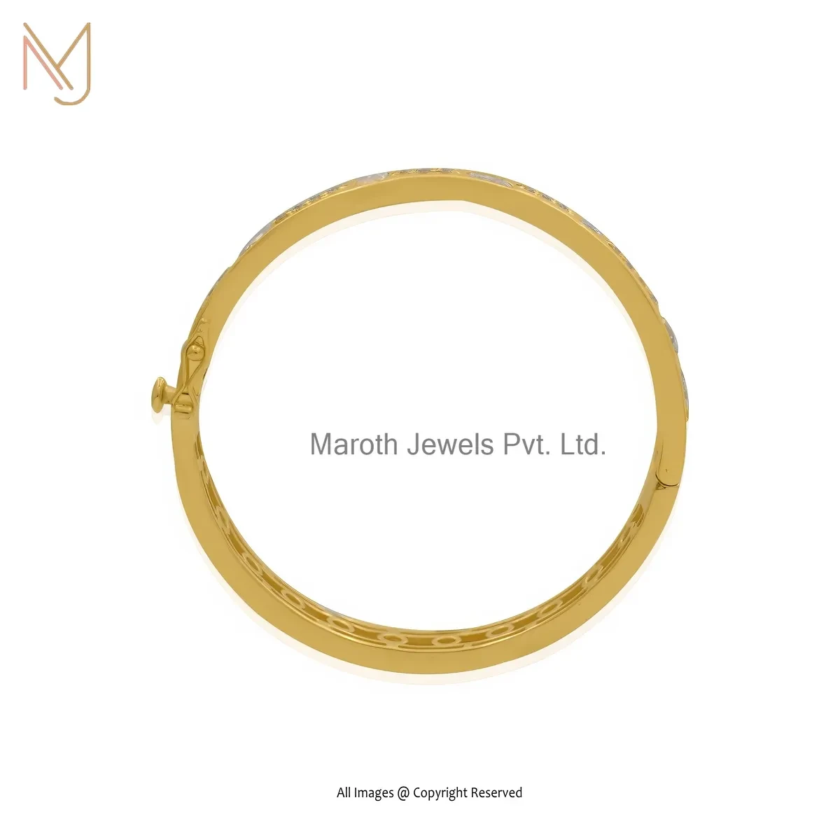 Private Lable 14K Yellow Gold Cubic Zircon Baguette Diamond Bangle
