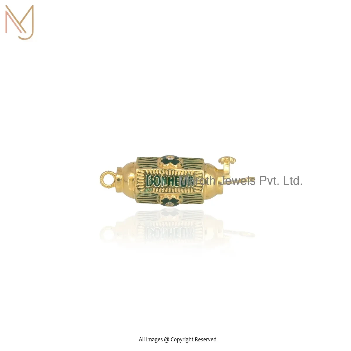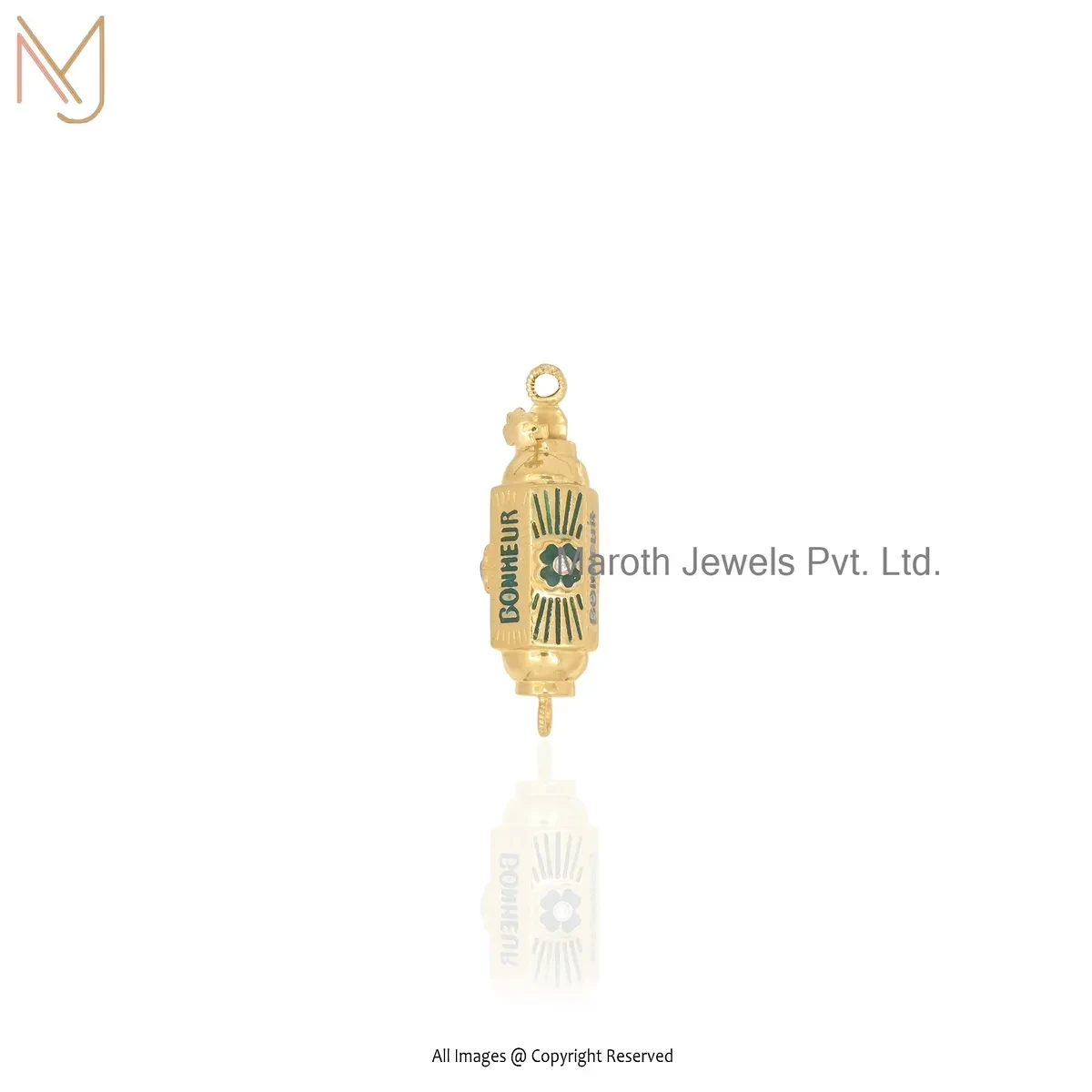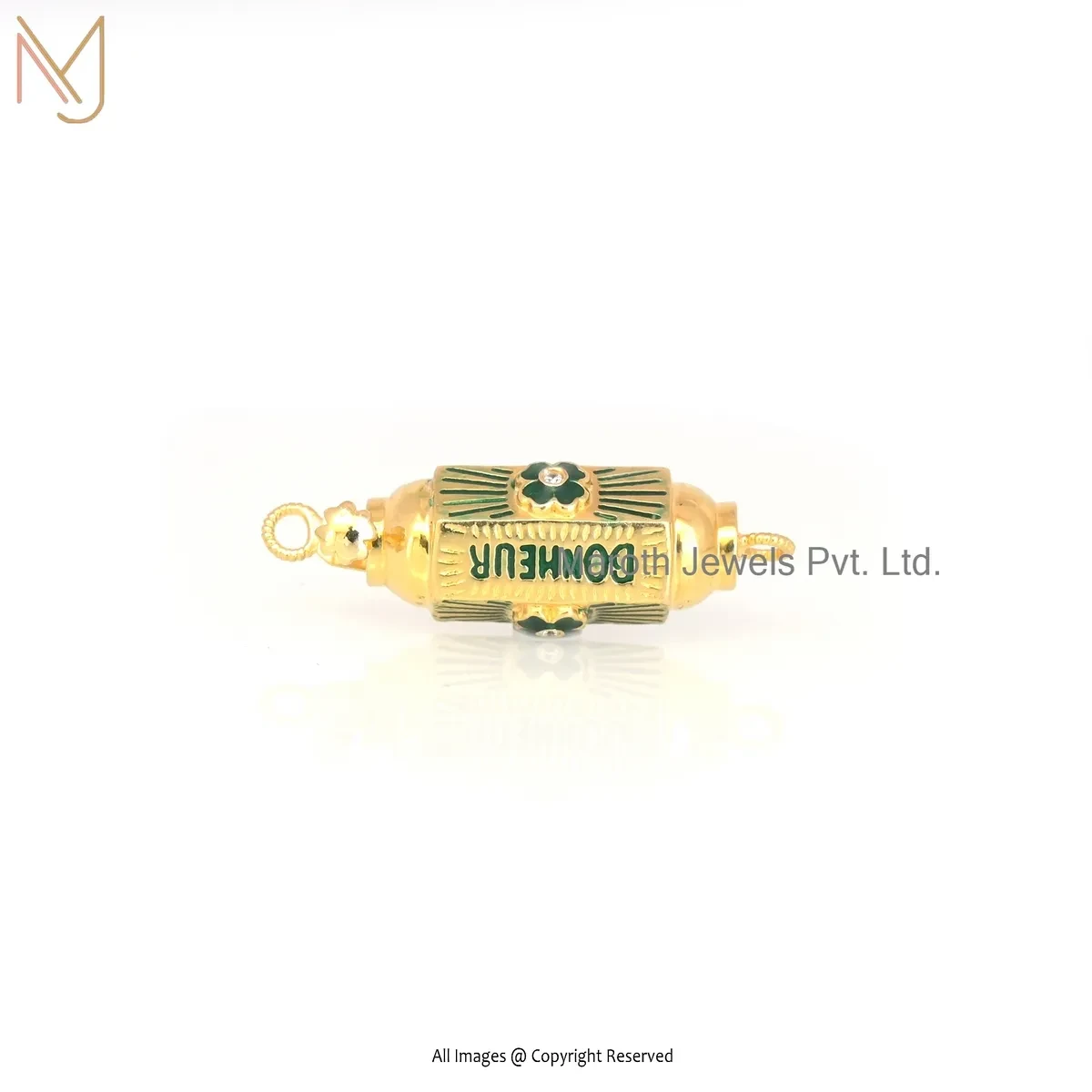 Private Lable 14K Yellow Gold Cubic Zircon & Green Enamel Gemstone Amulet Pendant