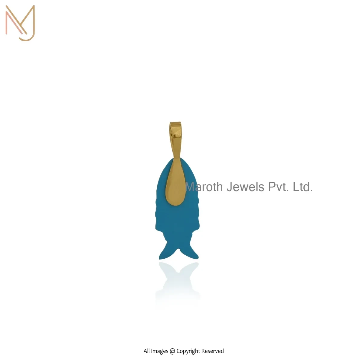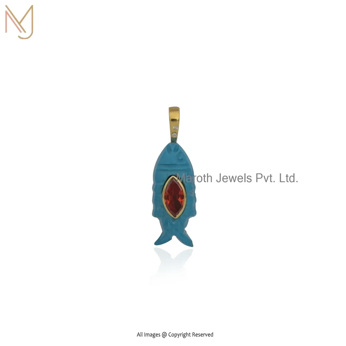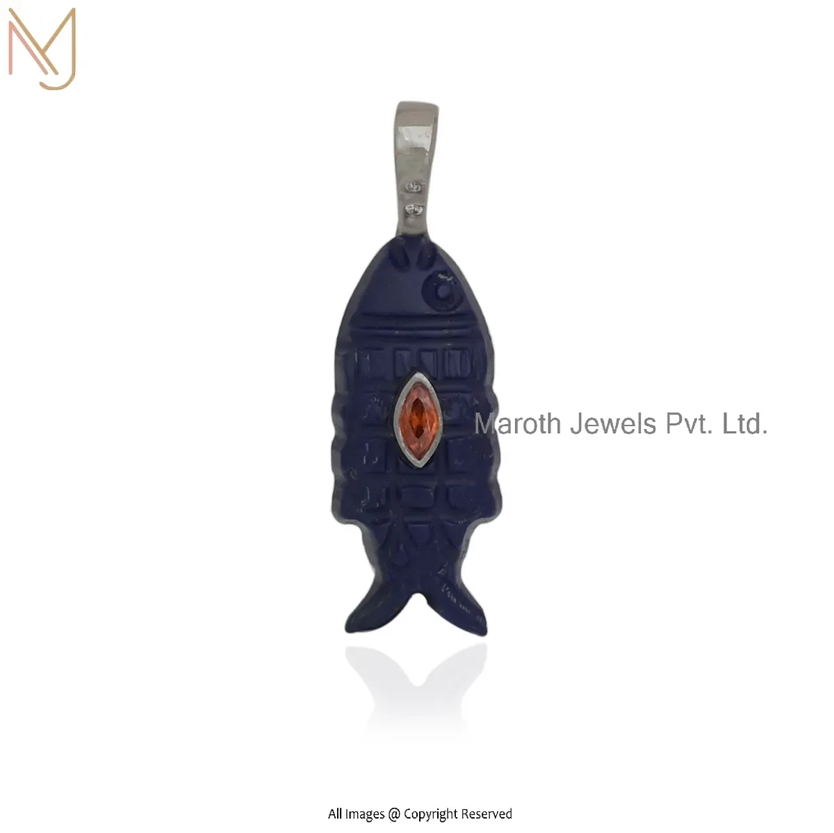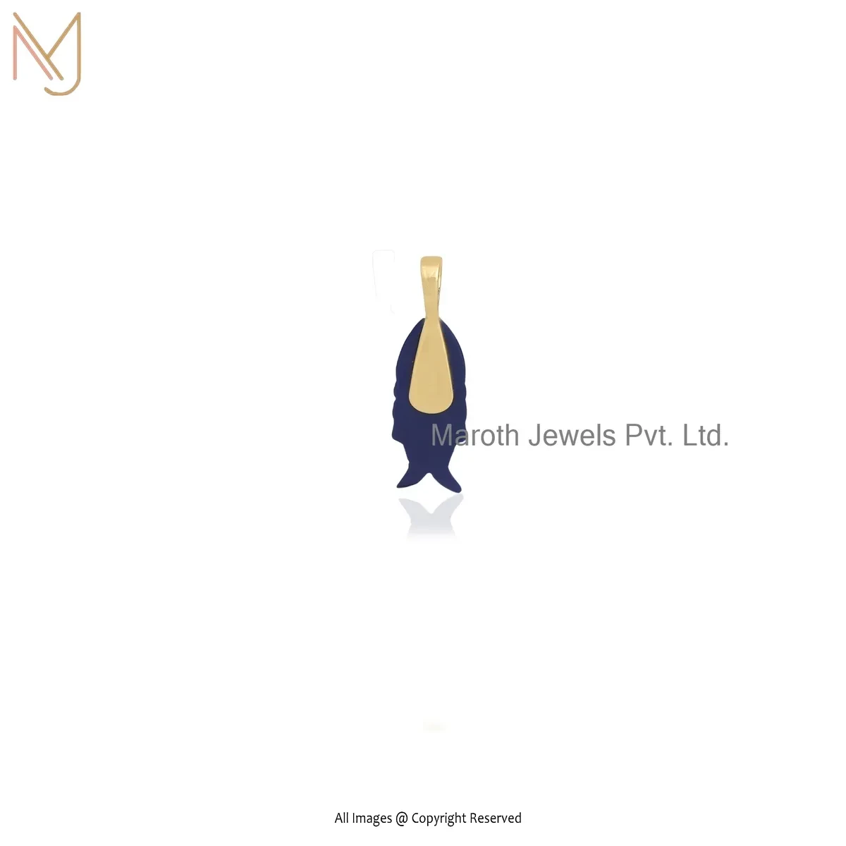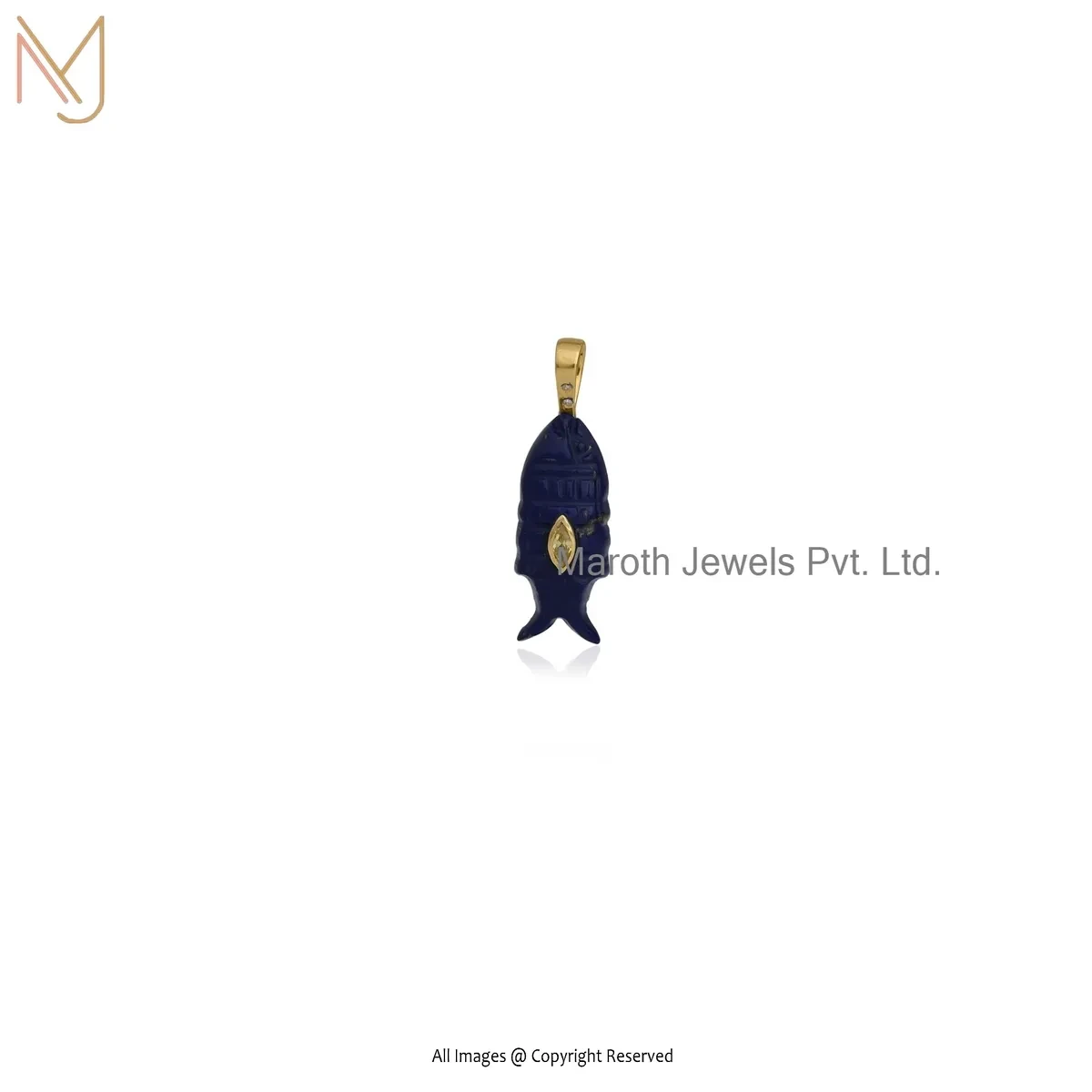Private Lable 14K Yellow Gold Cubic Zircon & Lapiz Lazuli Gemstone Fish Pendant