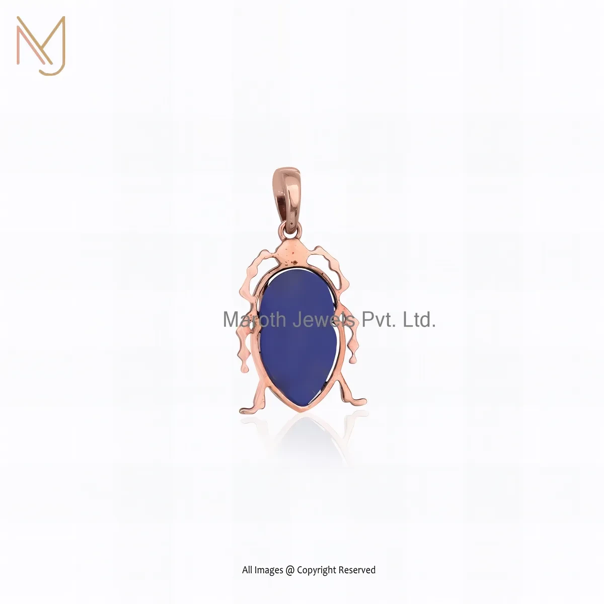 Private Lable 14K Yellow Gold Cubic Zircon & Lapiz Lazuli Gemstone Scarab Charm Pendant