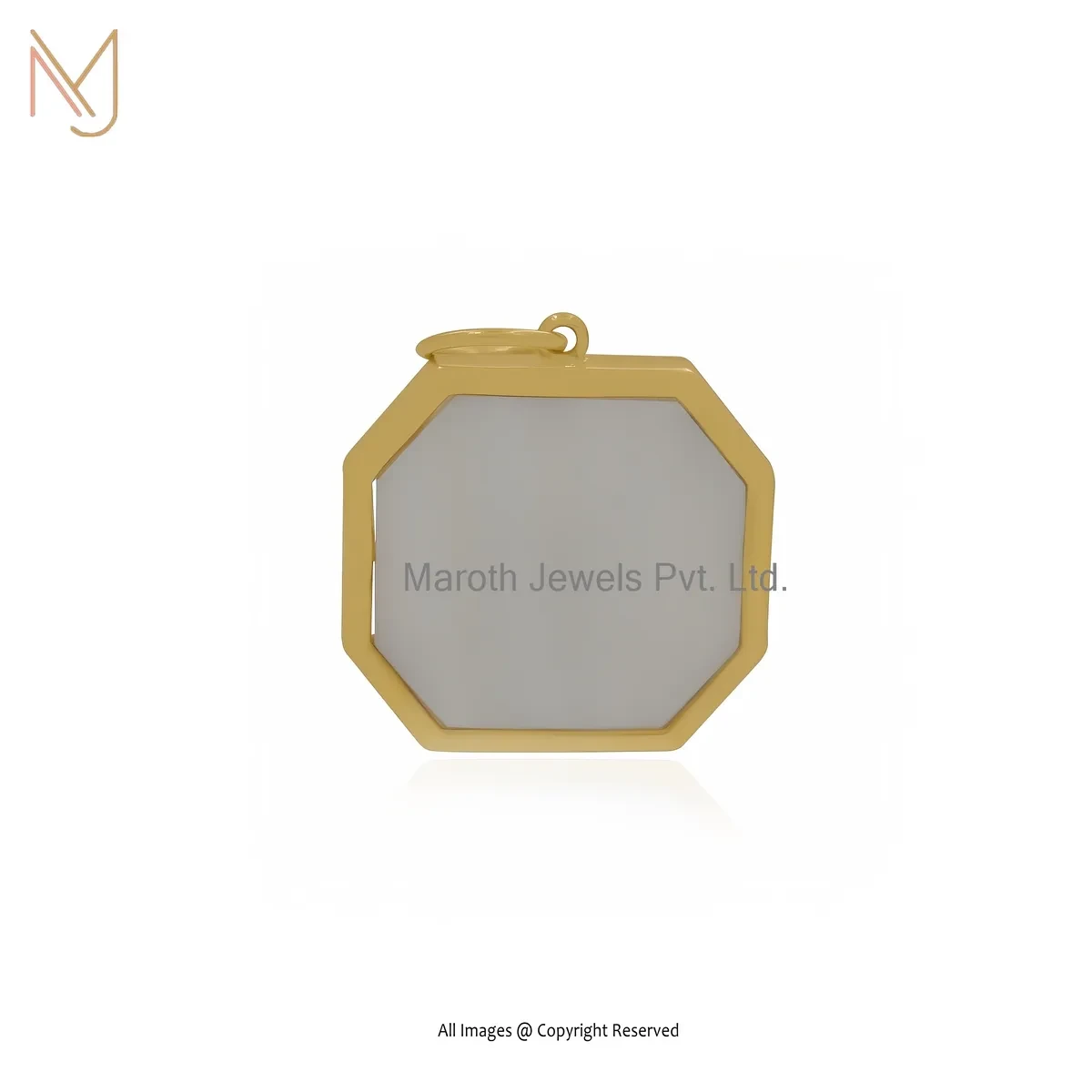 Private Lable 14K Yellow Gold Cubic Zircon & Mother Of Pearl Hexagon Pendant