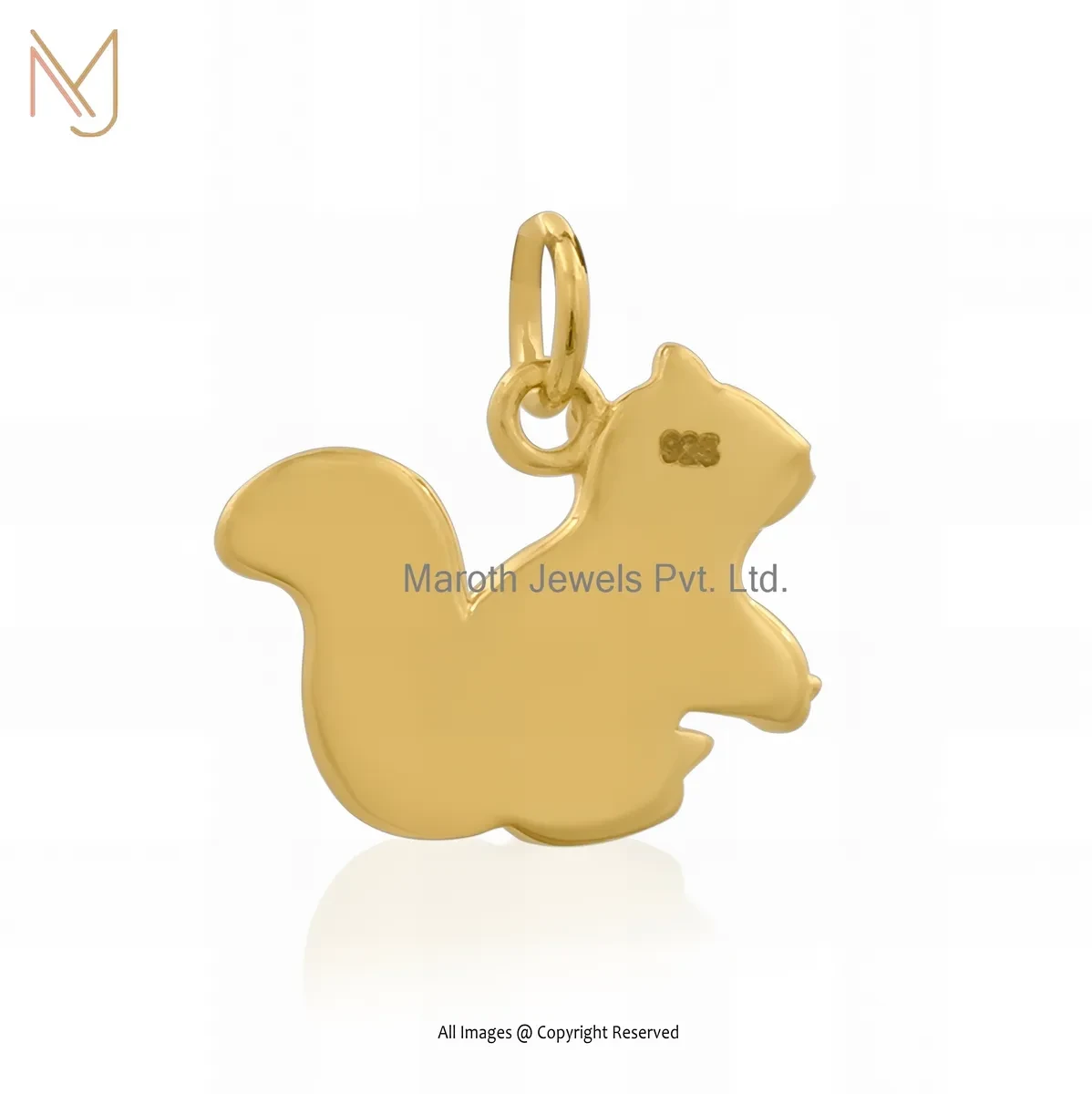 Private Lable 14K Yellow Gold Diamond Black Cubic Zircon Squirrel Charm Pendant