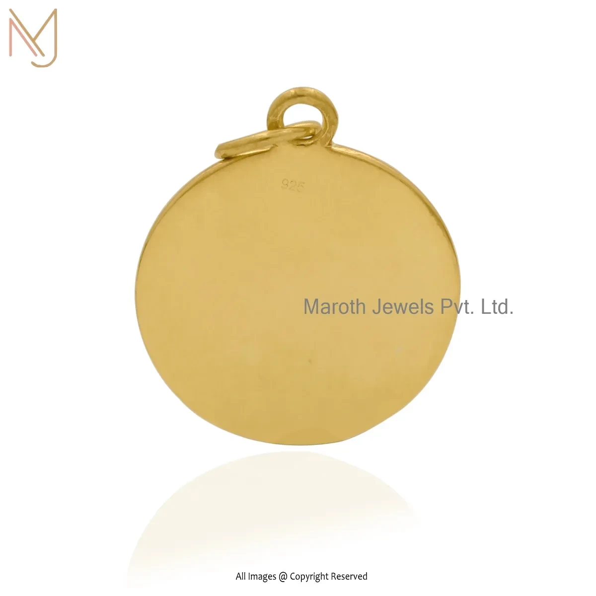 Private Lable 14K Yellow Gold Diamond & Cubic Zircon Flower Disc Pendant