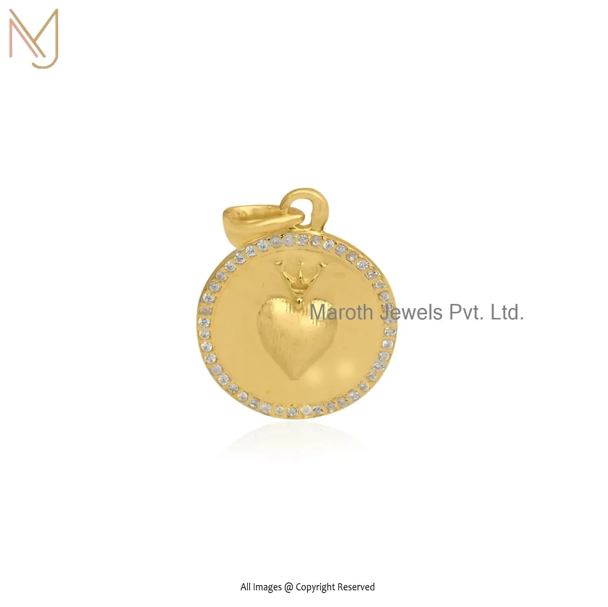 Private Lable 14K Yellow Gold Diamond & Cubic Zircon Gemstone Heart Disc Pendant Jewelry