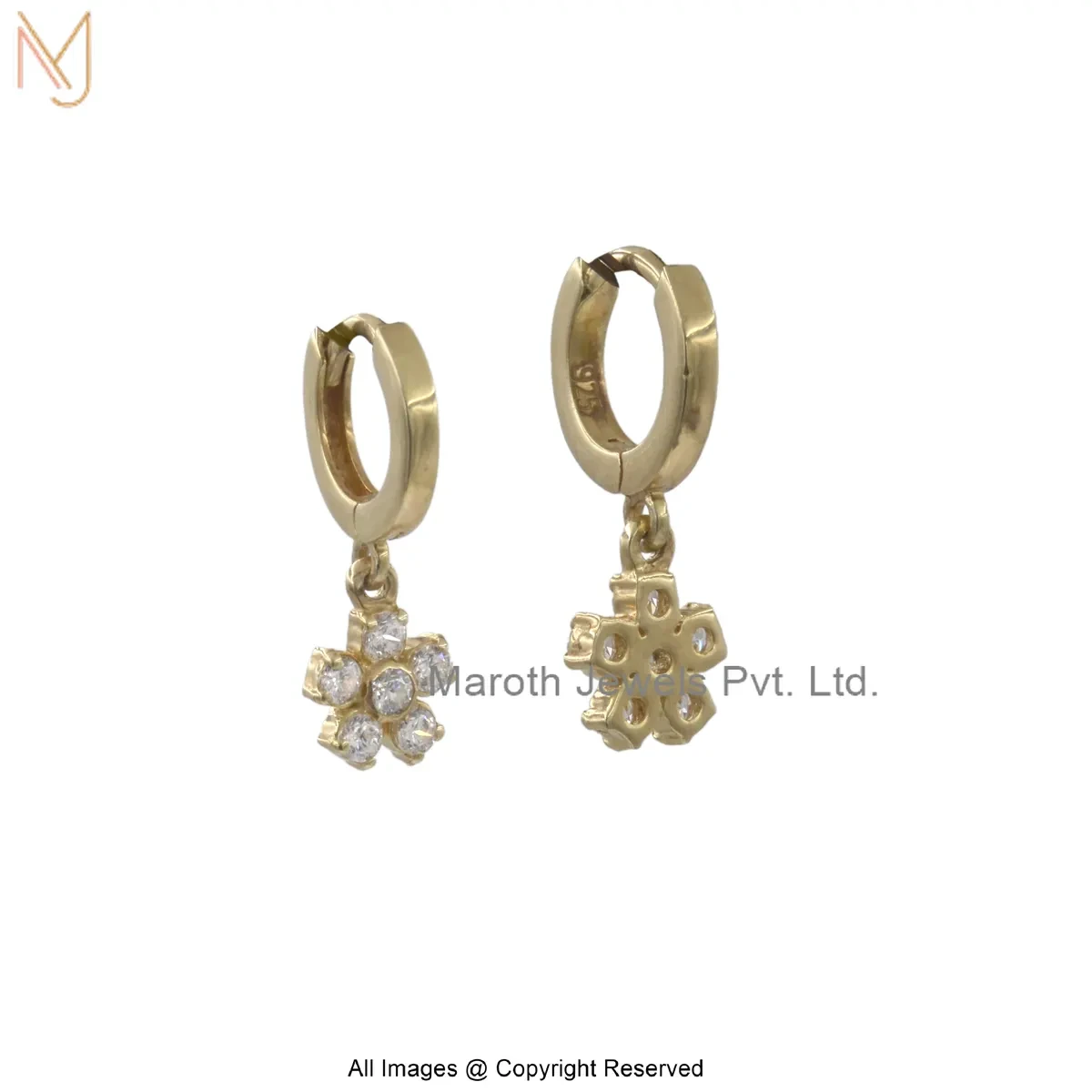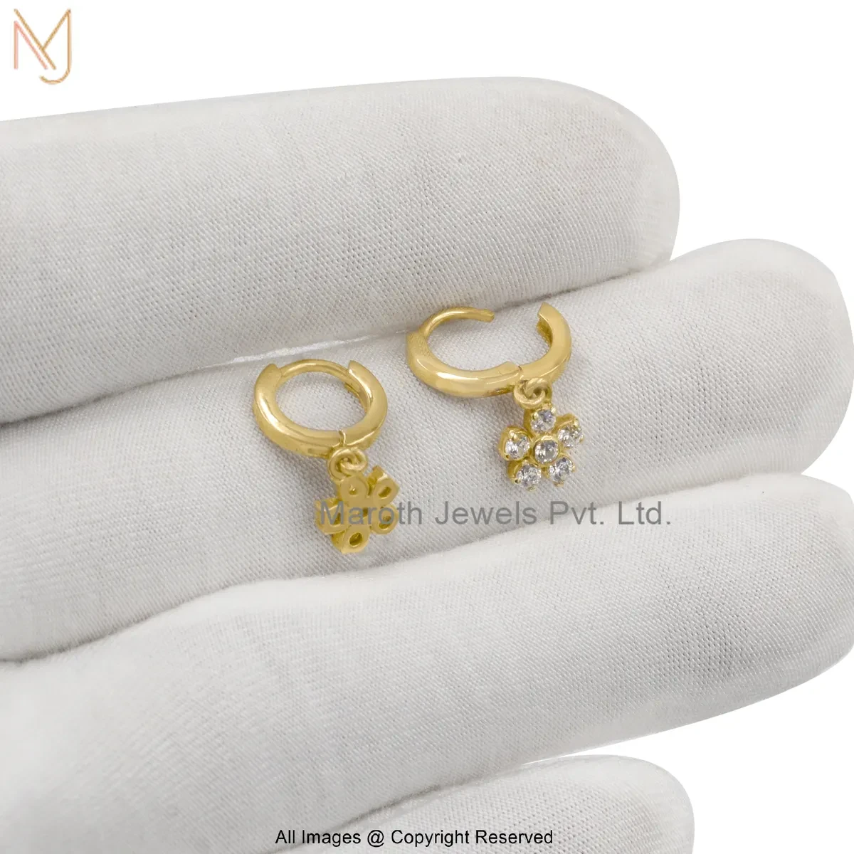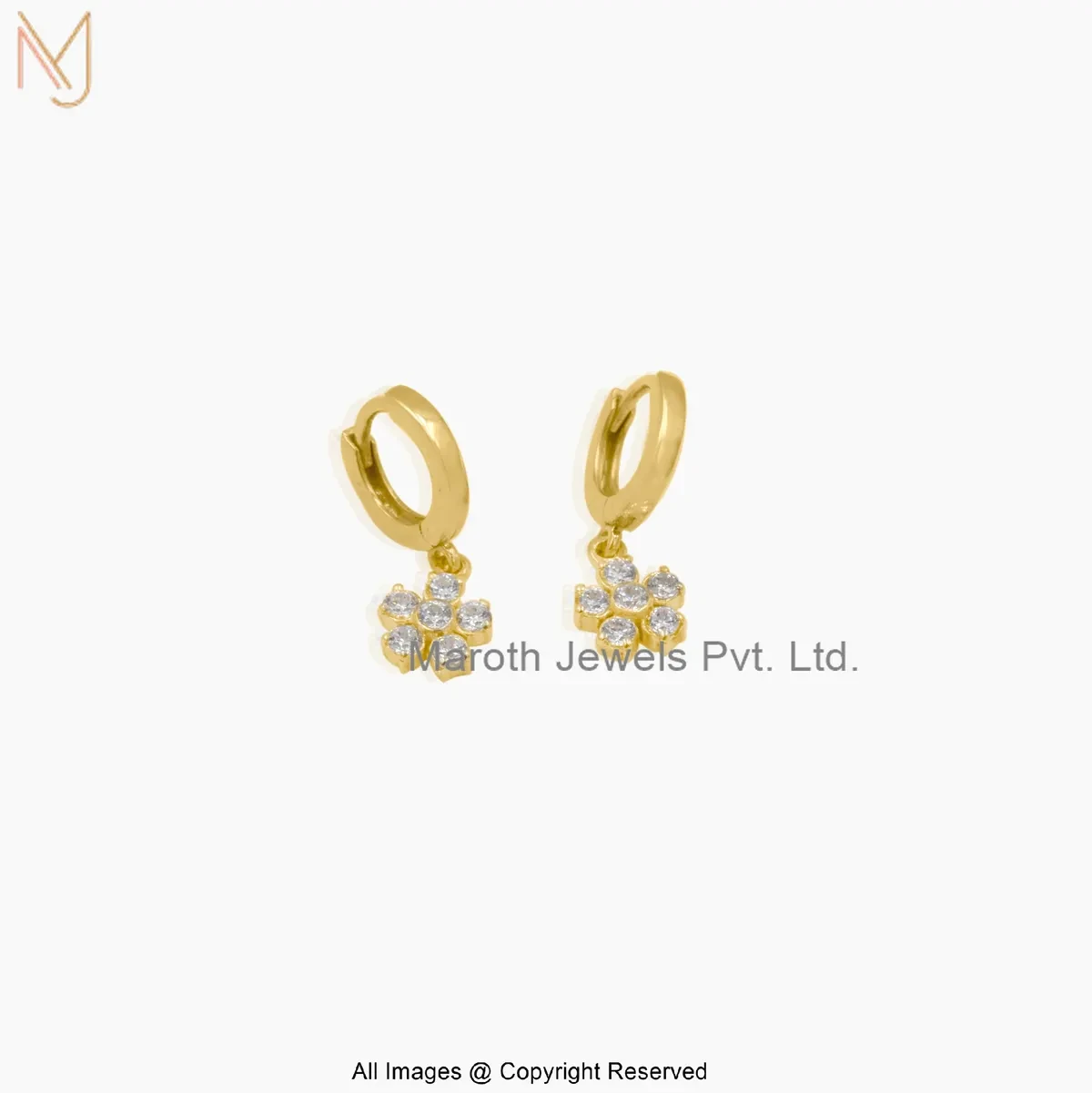 Private Lable 14K Yellow Gold Diamond Cubic Zircon Star Shape Drop Huggies Hoop Earring