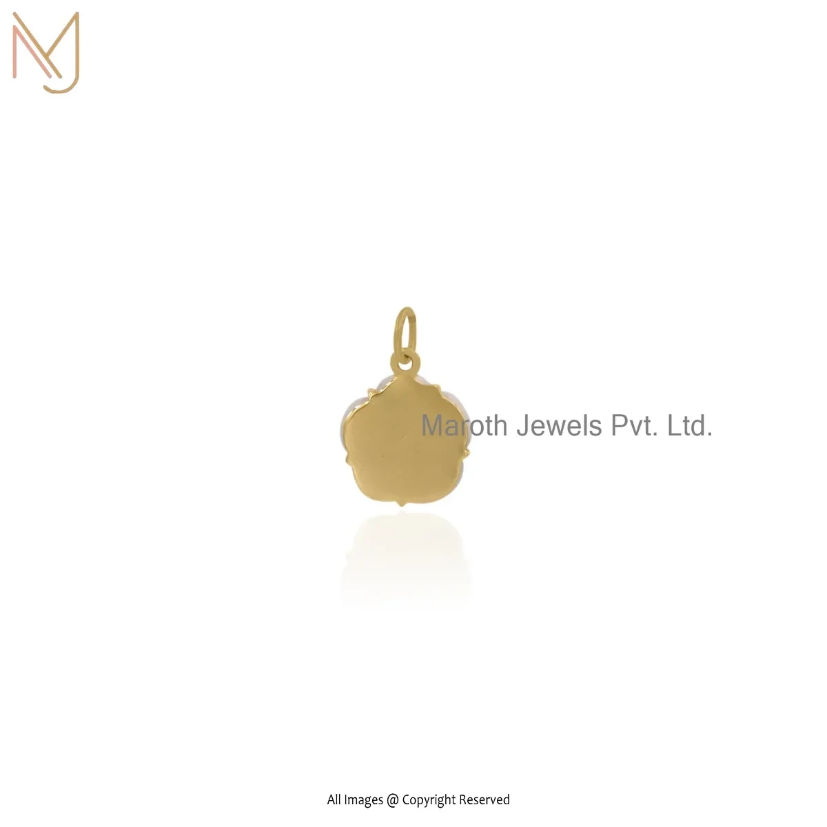 Private Lable 14K Yellow Gold Diamond & Pink Opal Gemstone Flower Pendant