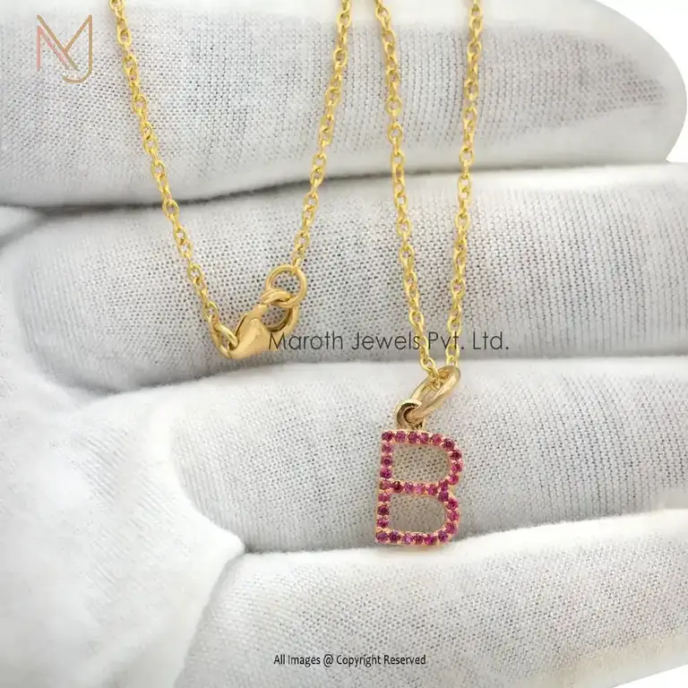 Private Lable 14K Yellow Gold Emerald Letter M Charm Pendant Jewelry