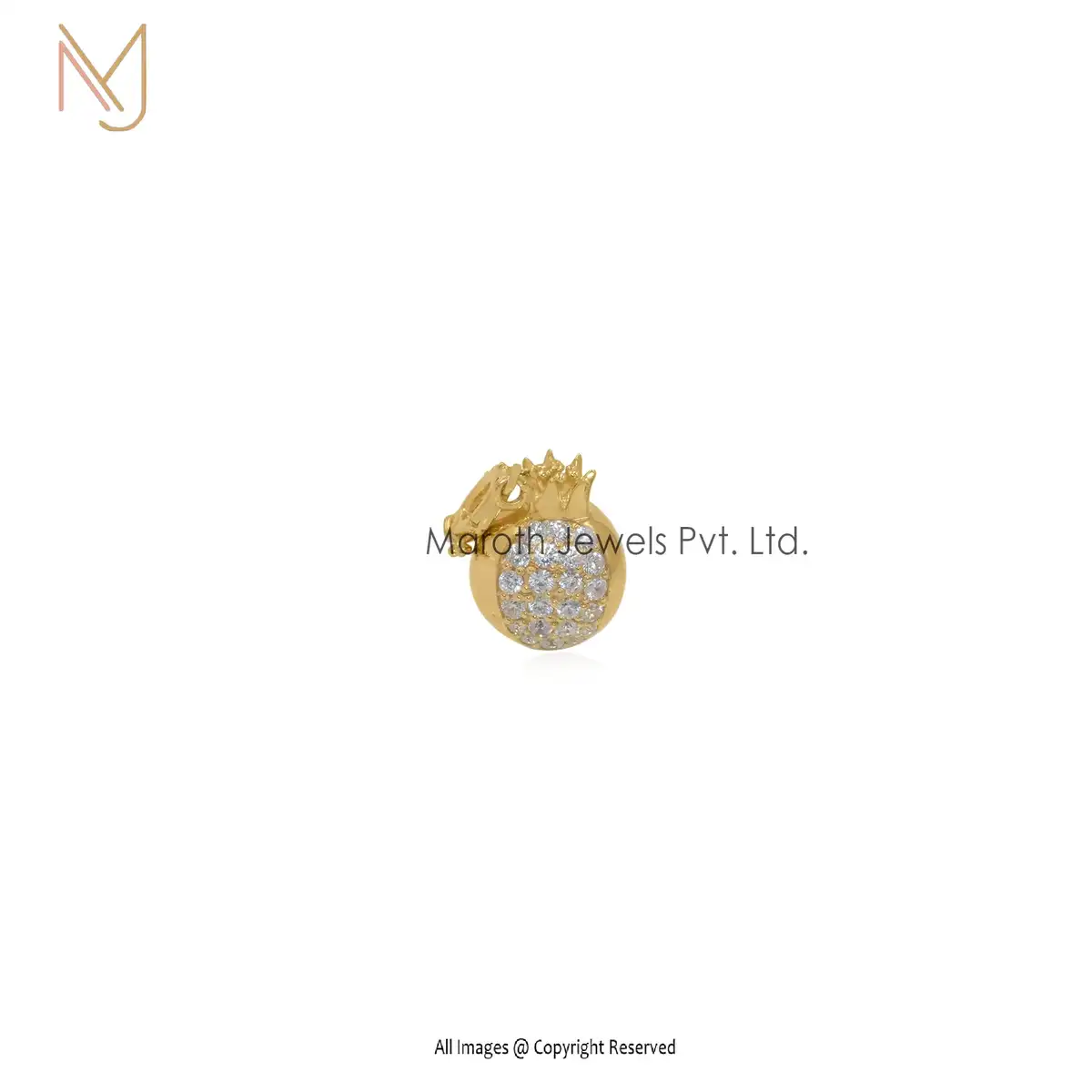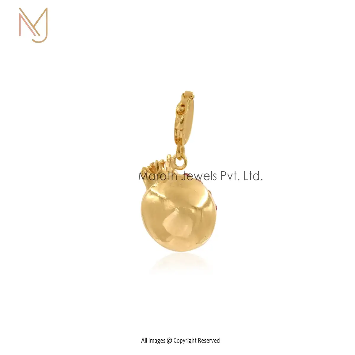 Private Lable 14K Yellow Gold Garnet Cubic Zircoina Pomegranate Pendant Jewery