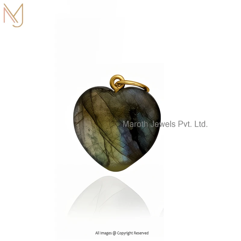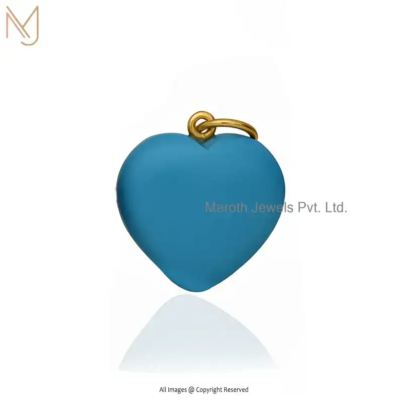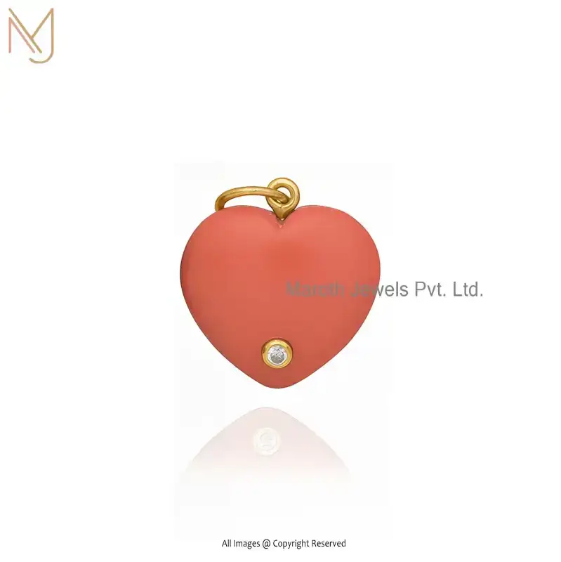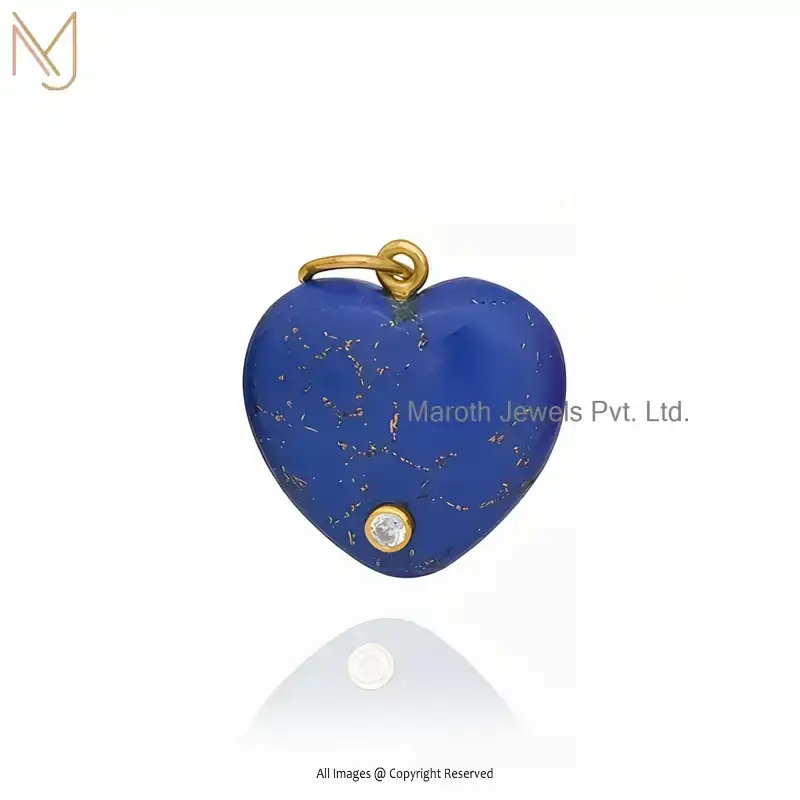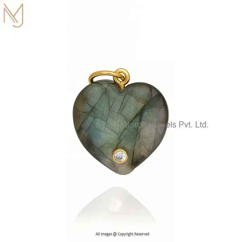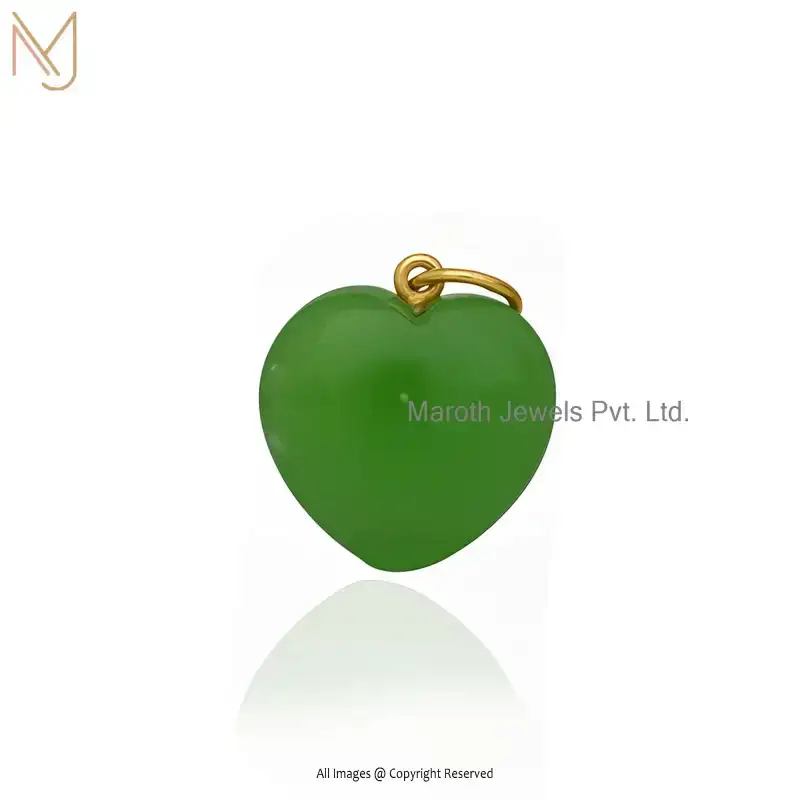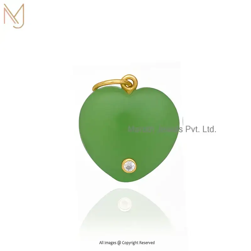 Private Lable 14K Yellow Gold Malachite And White CZ Heart Gemstone Pendant