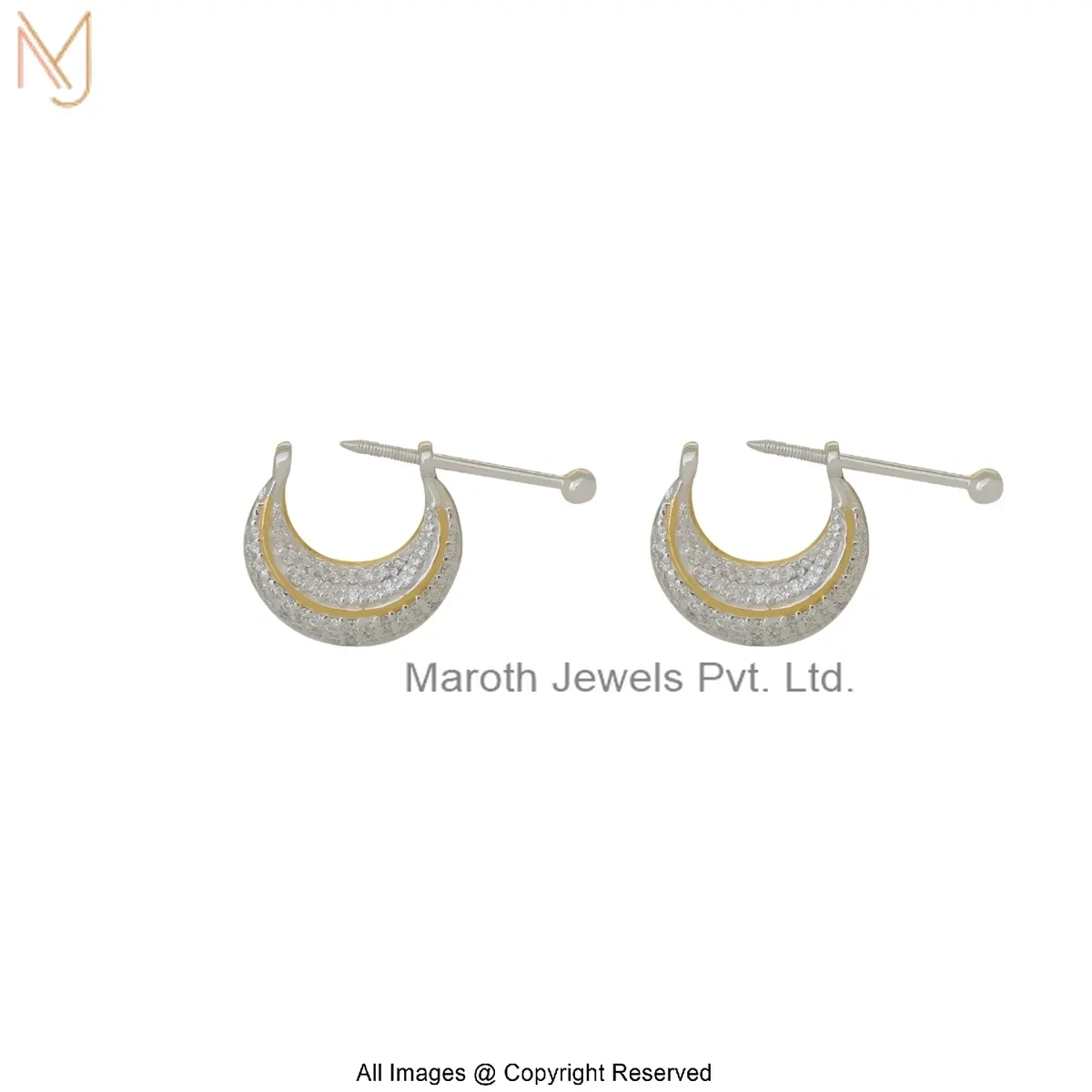 Private Lable 14K Yellow Gold Moissanite Men Ethnic Design Modern Hoop Earrings