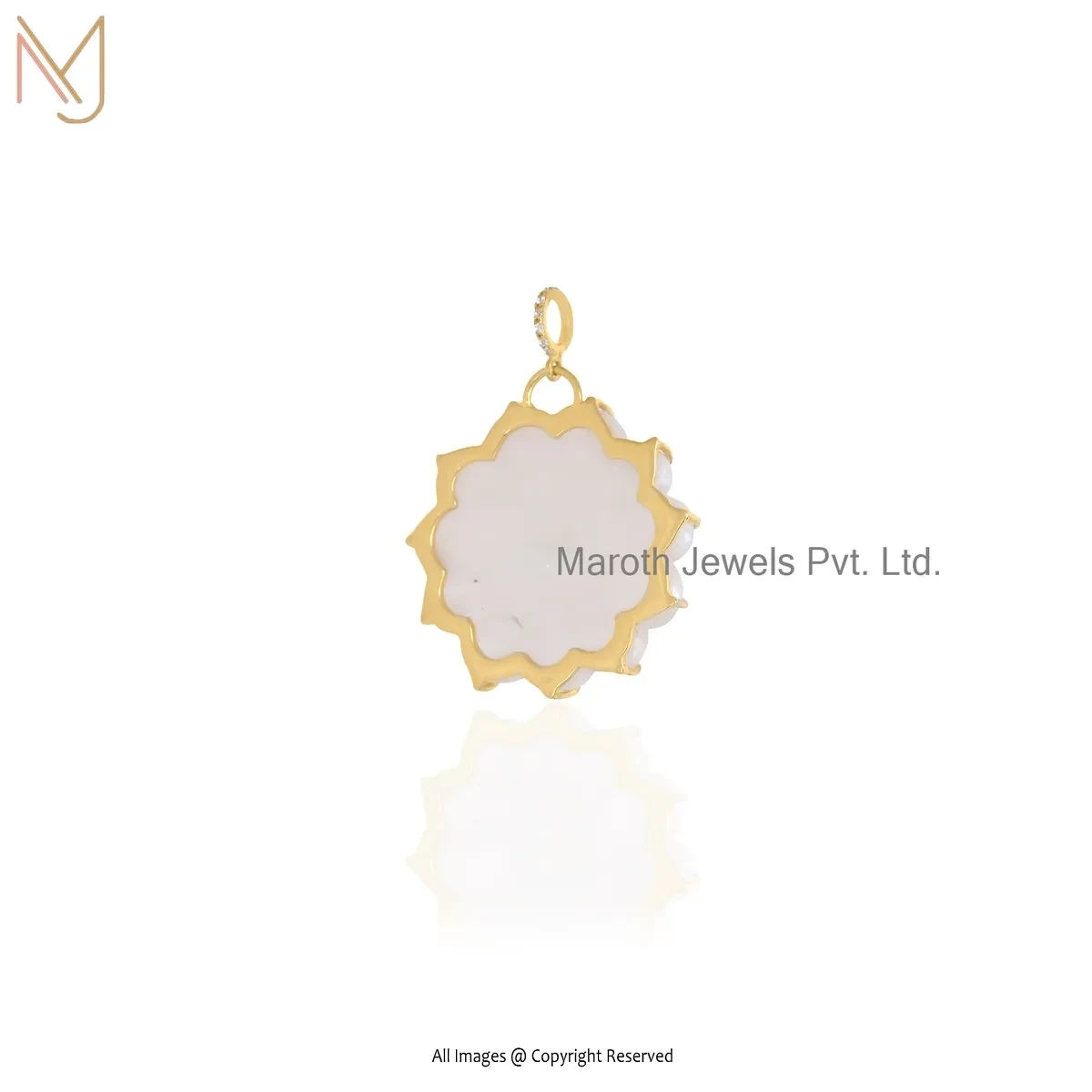 Private Lable 14K Yellow Gold Moonstone & Turquoise Gemstone Flower Pendant