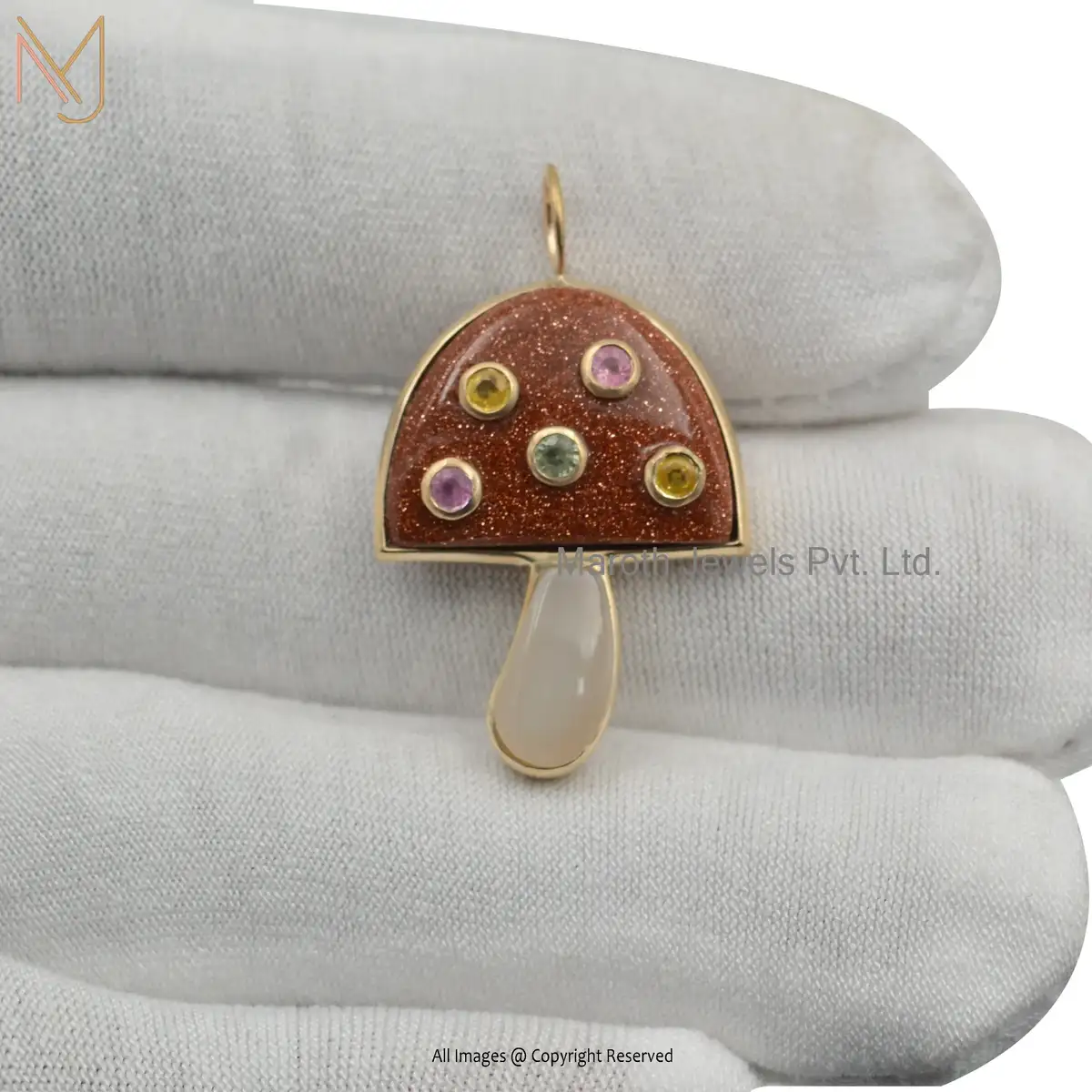Private Lable 14K Yellow Gold Opal & Multi Gemstone Mushroom Pendant