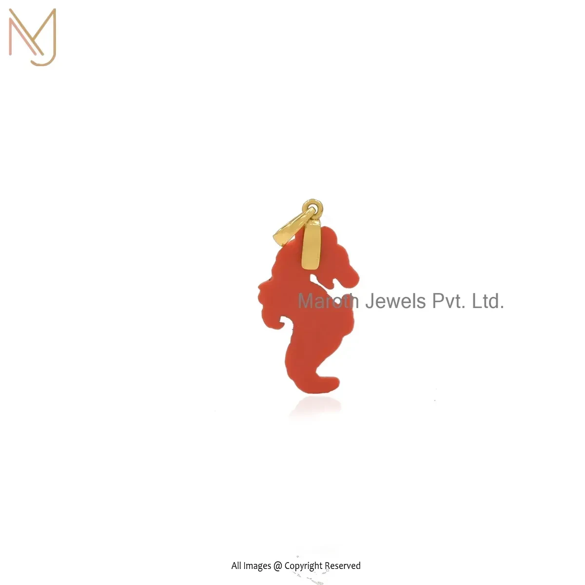 Private Lable 14K Yellow Gold Orange Coral And Turquoise Seahorse Pendant