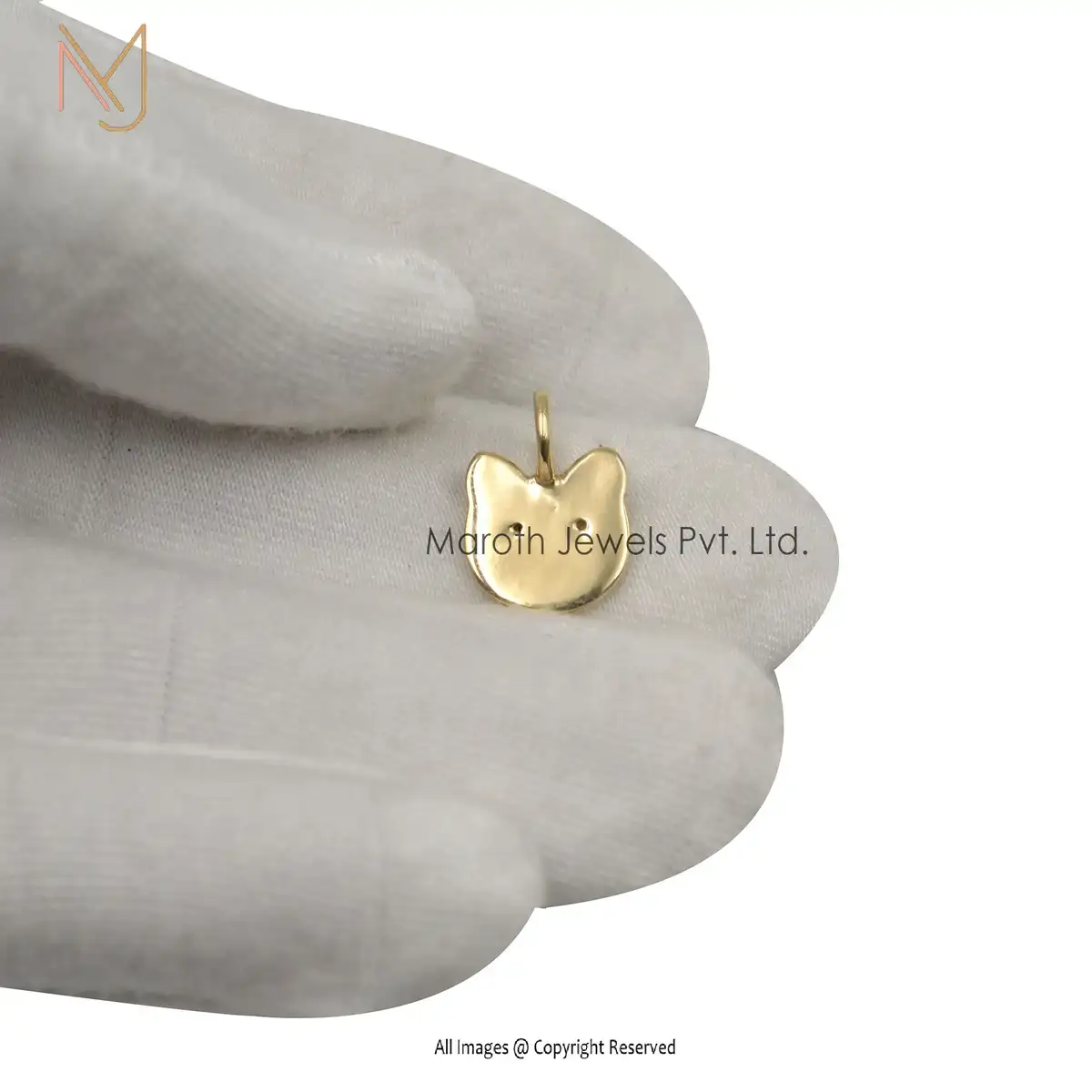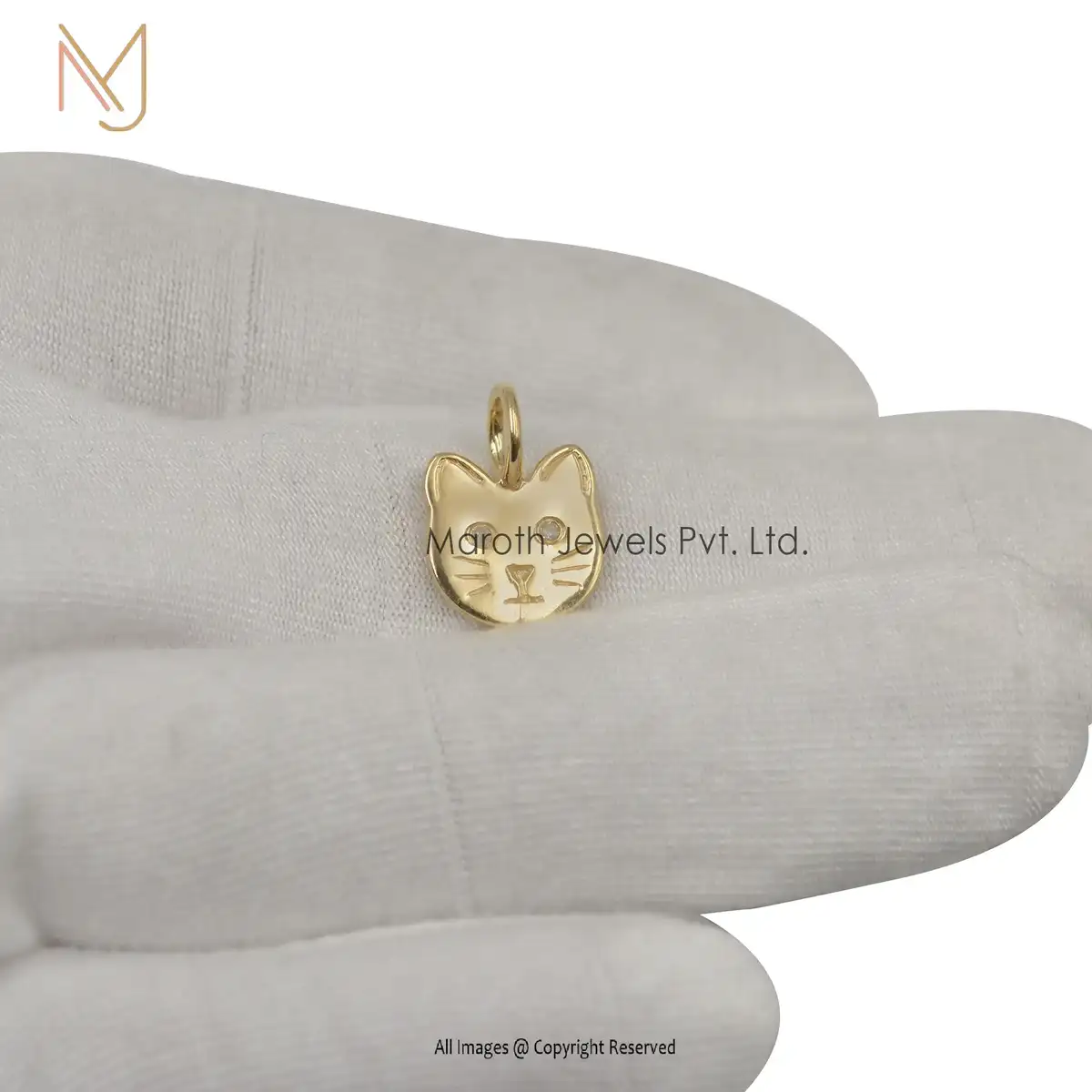 Private Lable 14K Yellow Gold Pave Diamond Cat Face Pendant Jewelry