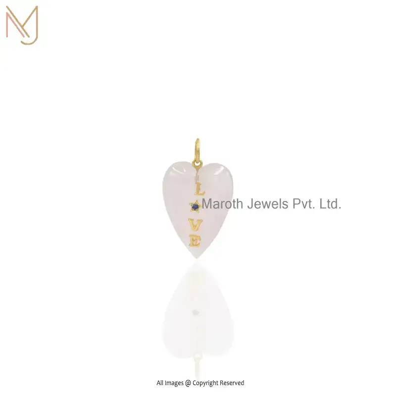 Private Lable 14K Yellow Gold Pink Opal & Labradorite & Pink CZ Letter Love Heart Pendant