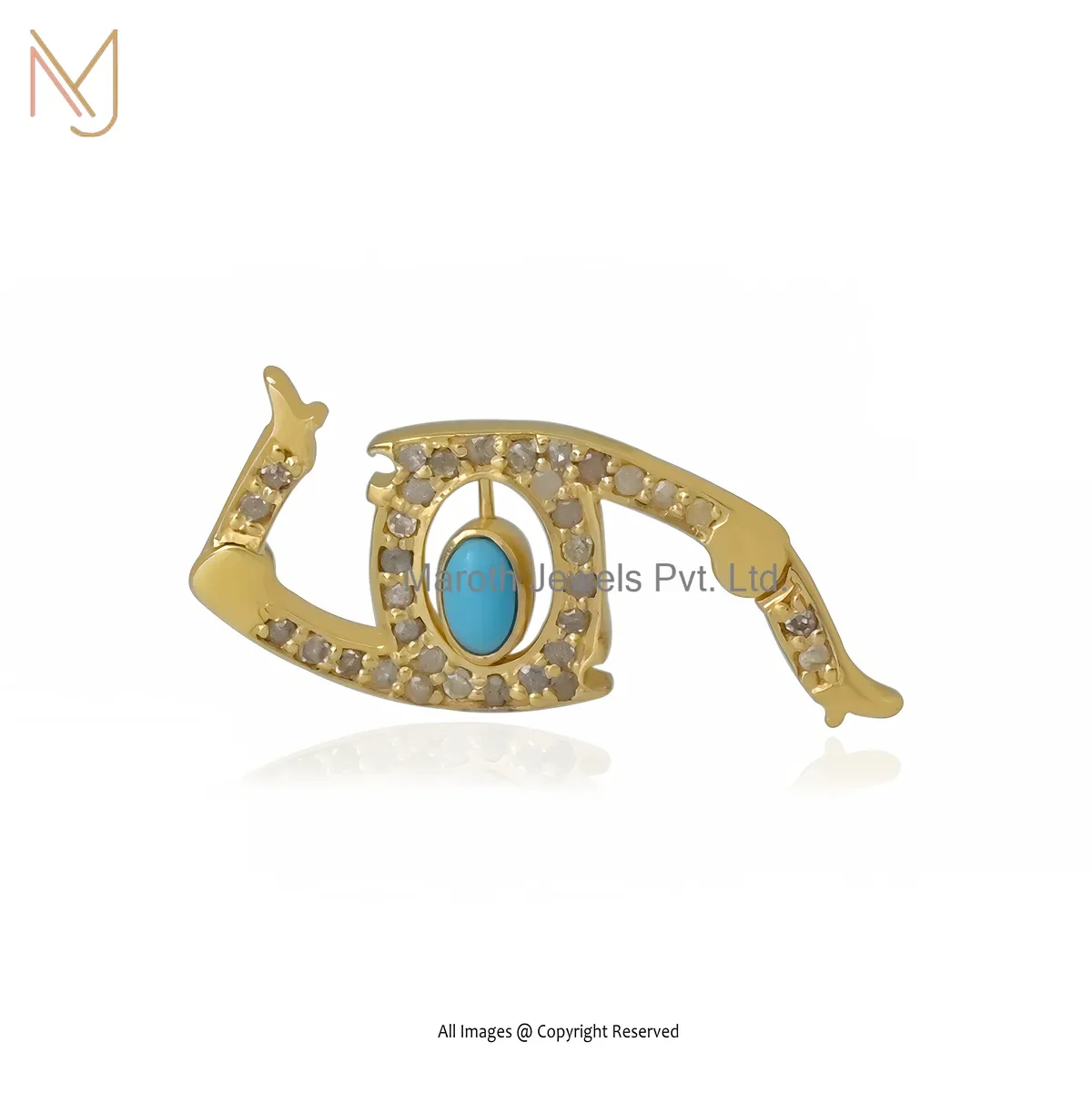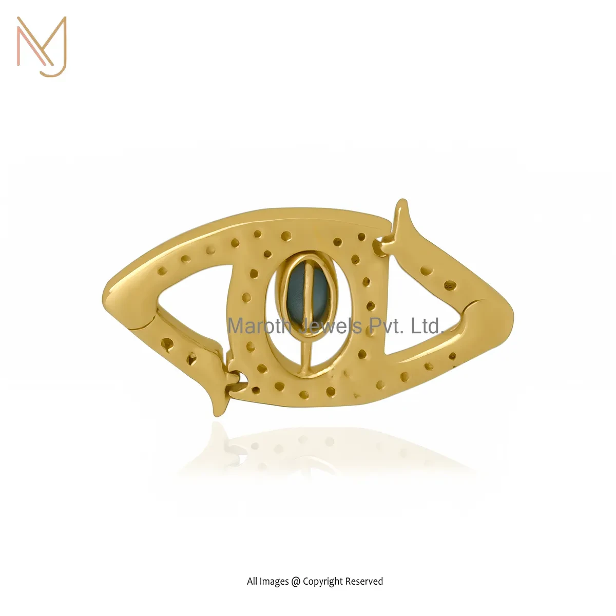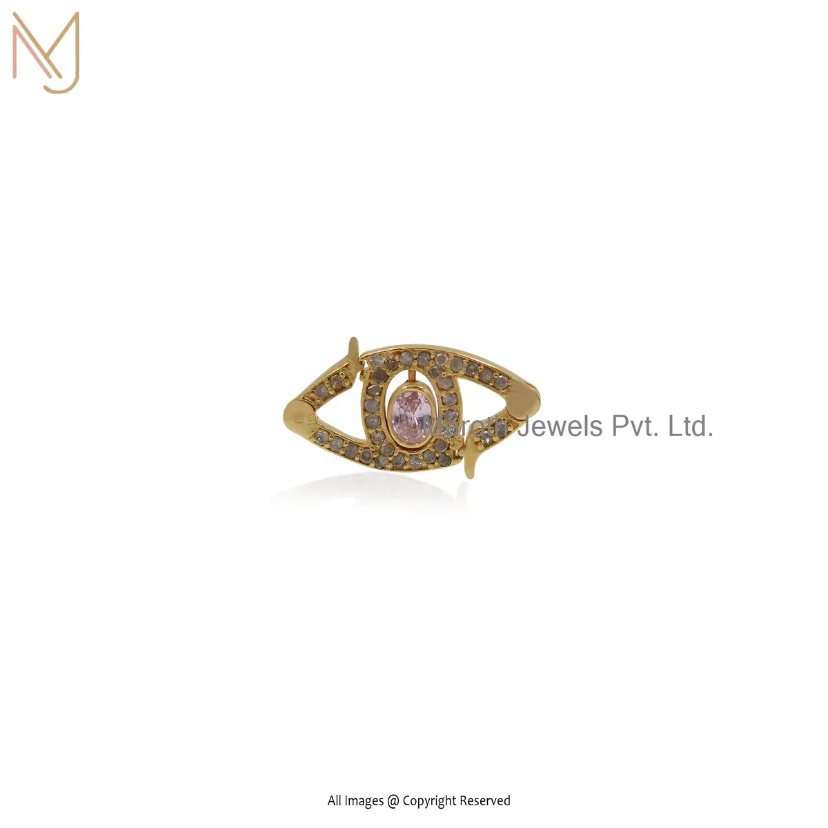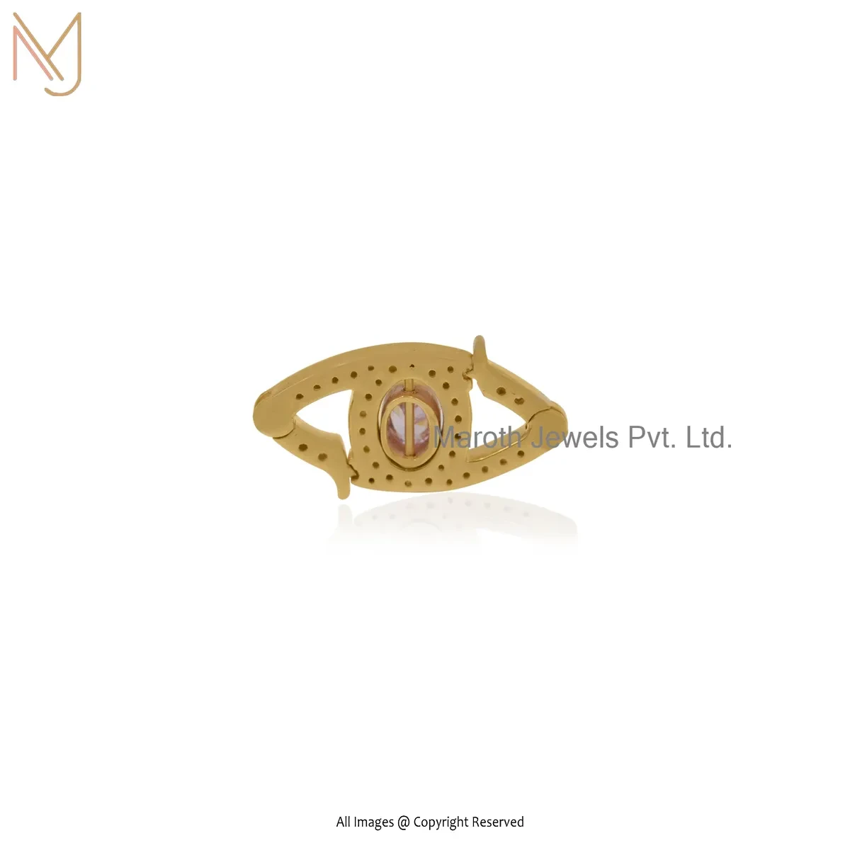 Private Lable 14K Yellow Gold Plated Diamond And Pink Sapphire Evil Eye Charm Holder Jewelry