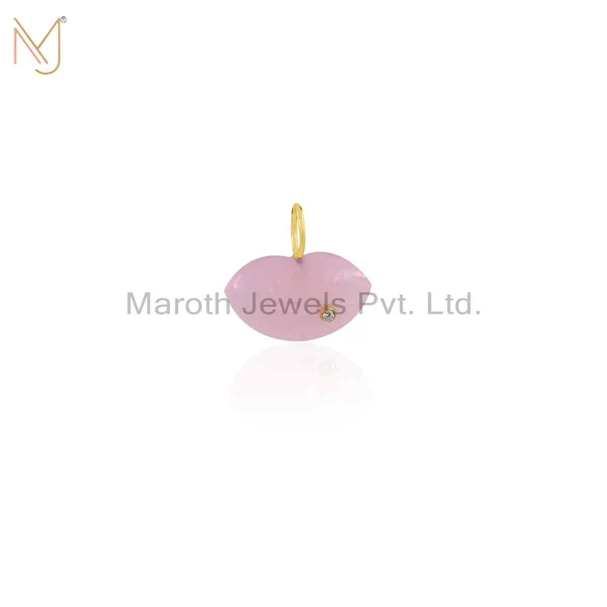 Private Lable 14K Yellow Gold & Rose Quartz And CZ Pendant Jewelry