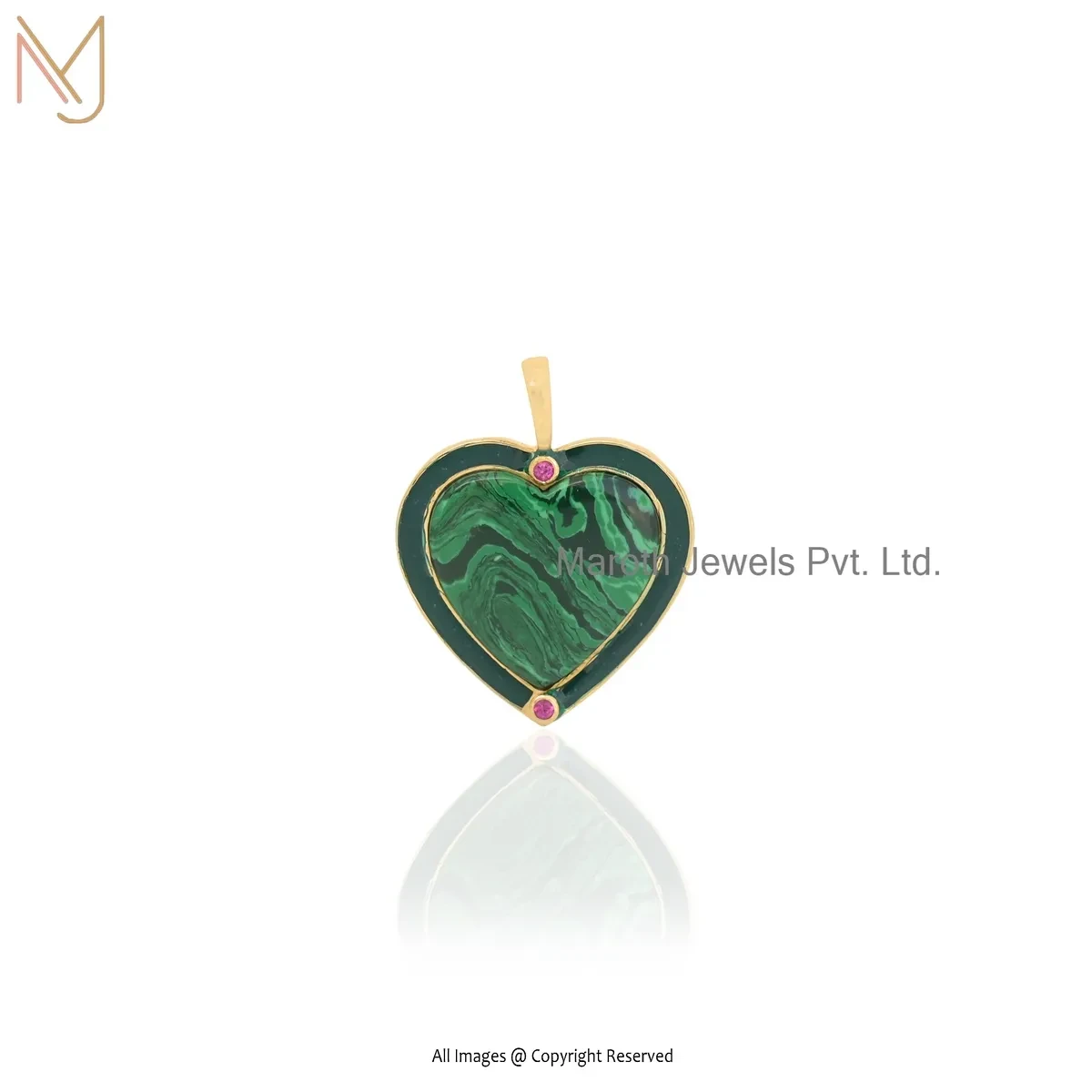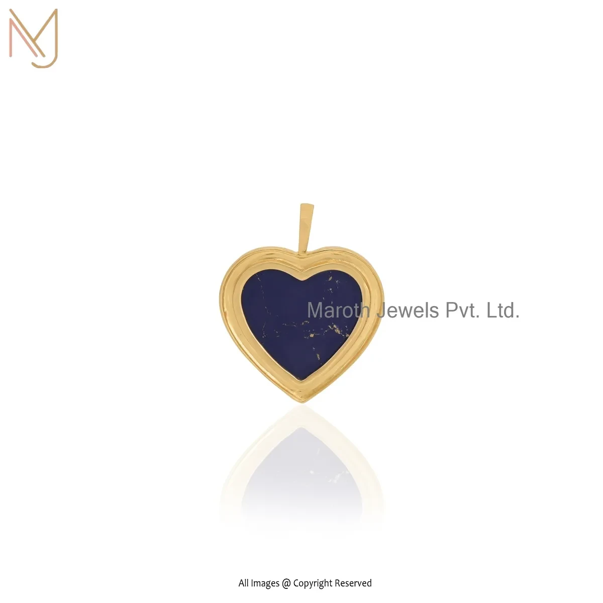 Private Lable 14K Yellow Gold Ruby & Lapiz Lazuli Gemstone Heart Pendant
