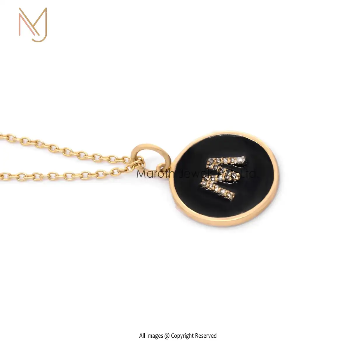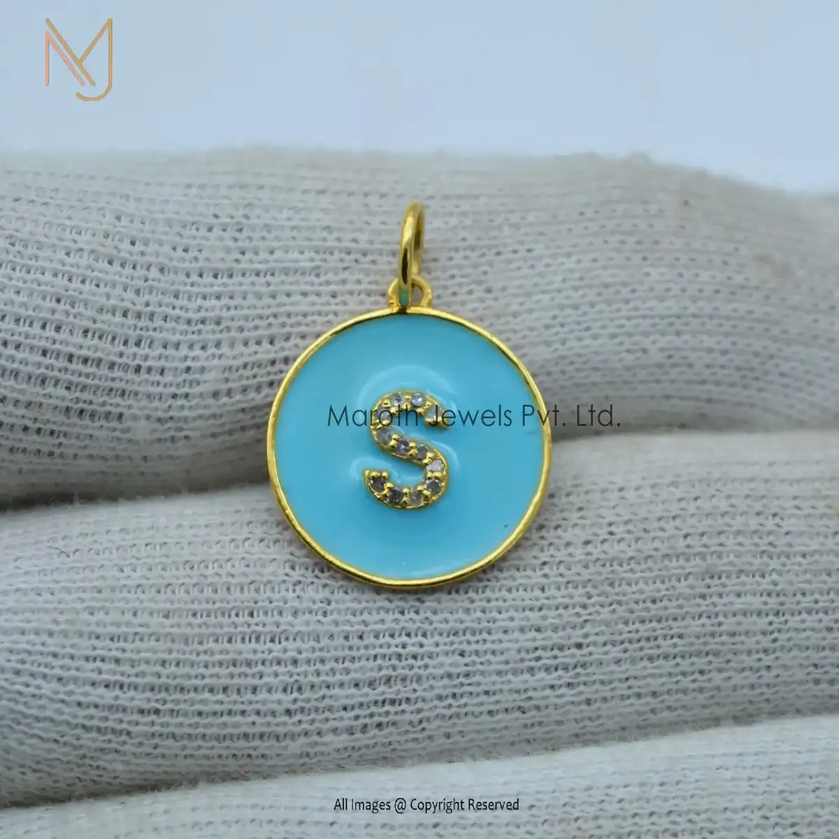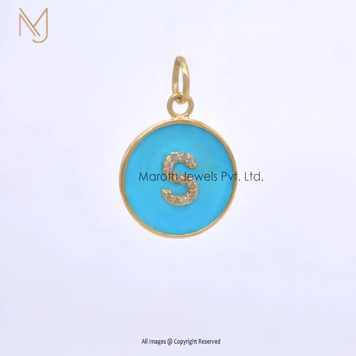 Private Lable 14K Yellow Gold Turquoise Enamel & Moiissanite Initials Pendant Diamond JewelryItem