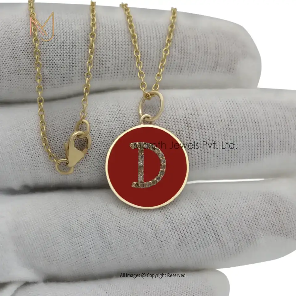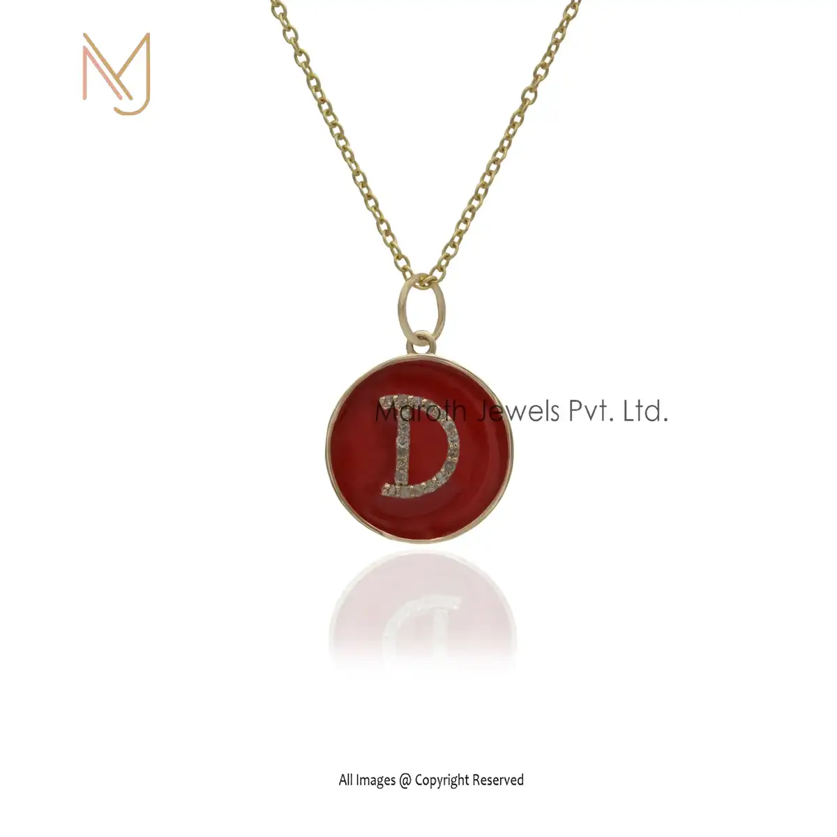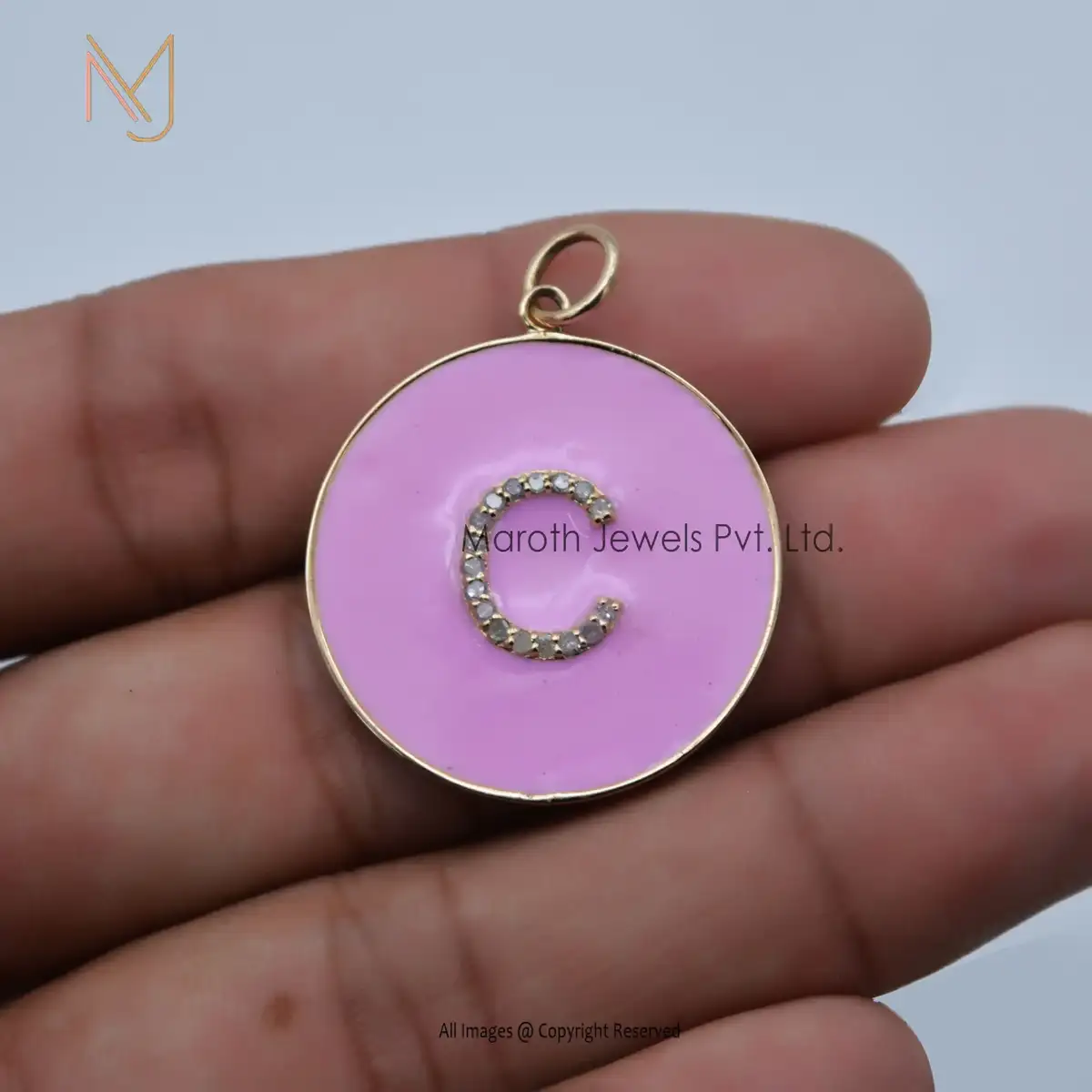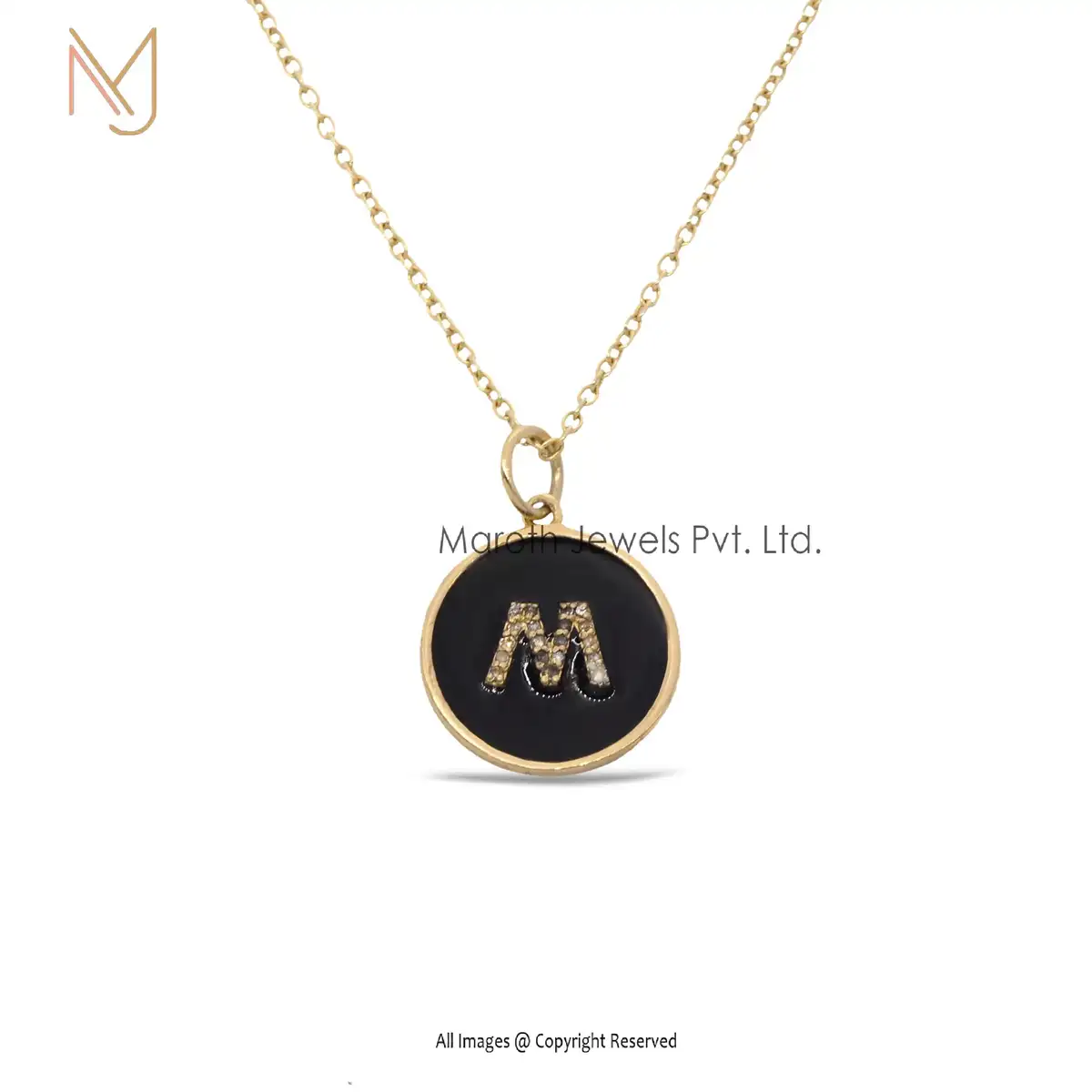 Private Lable 14K Yellow Gold Turquoise Enamel & Moiissanite Initials Pendant Diamond JewelryItem