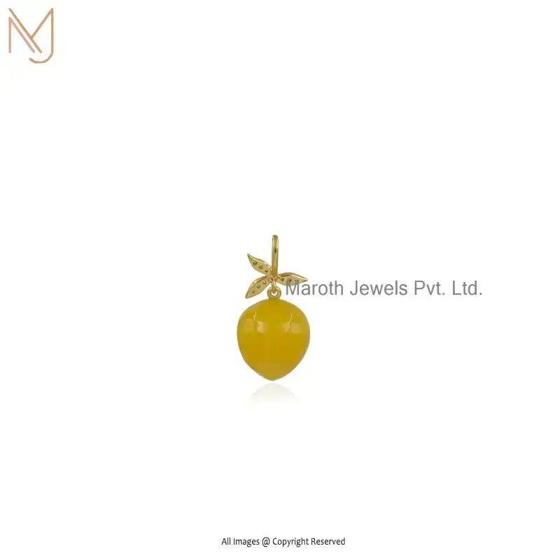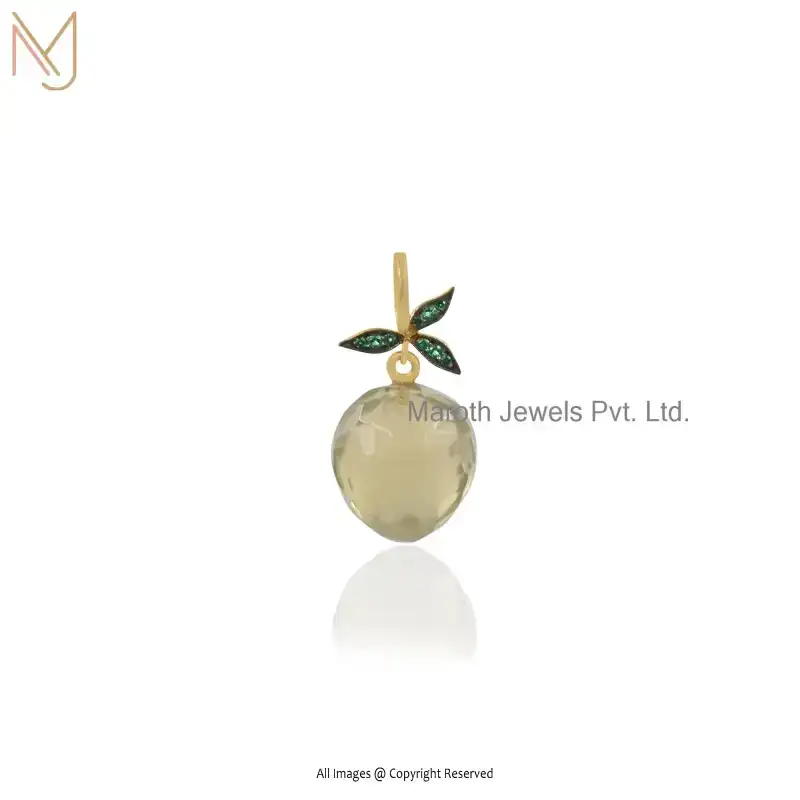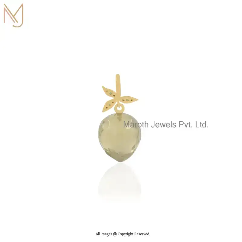 Private Lable 14K Yellow Gold & Yellow Quartz And Cubic Zircon Gemstone Lemon Pendant