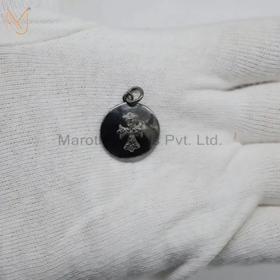 Private Lable 925 Silver Black Rhodium Plated Pave Diamond Disc Pendant Jewelry