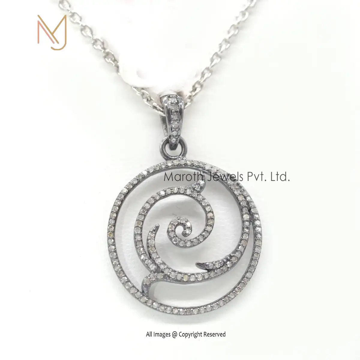 Private Lable 925 Silver Black Rhodium Plated Pave Diamond Pendant Handmade Jewelry