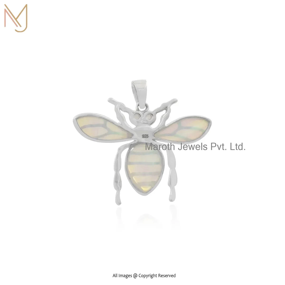 Private Lable 925 Silver Natural Silver Plated Cubic Zircon Ethiopian Opal Honey Bee Charm Pendant