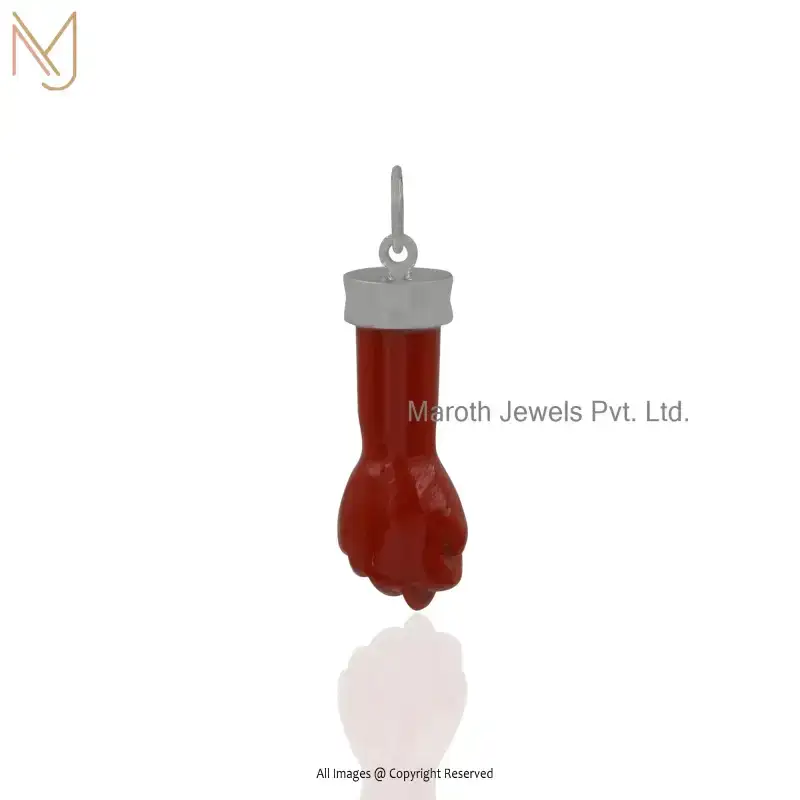 Private Lable 925 Silver Natural Silver Plated Red Coral And Figa Hand Charm Pendant