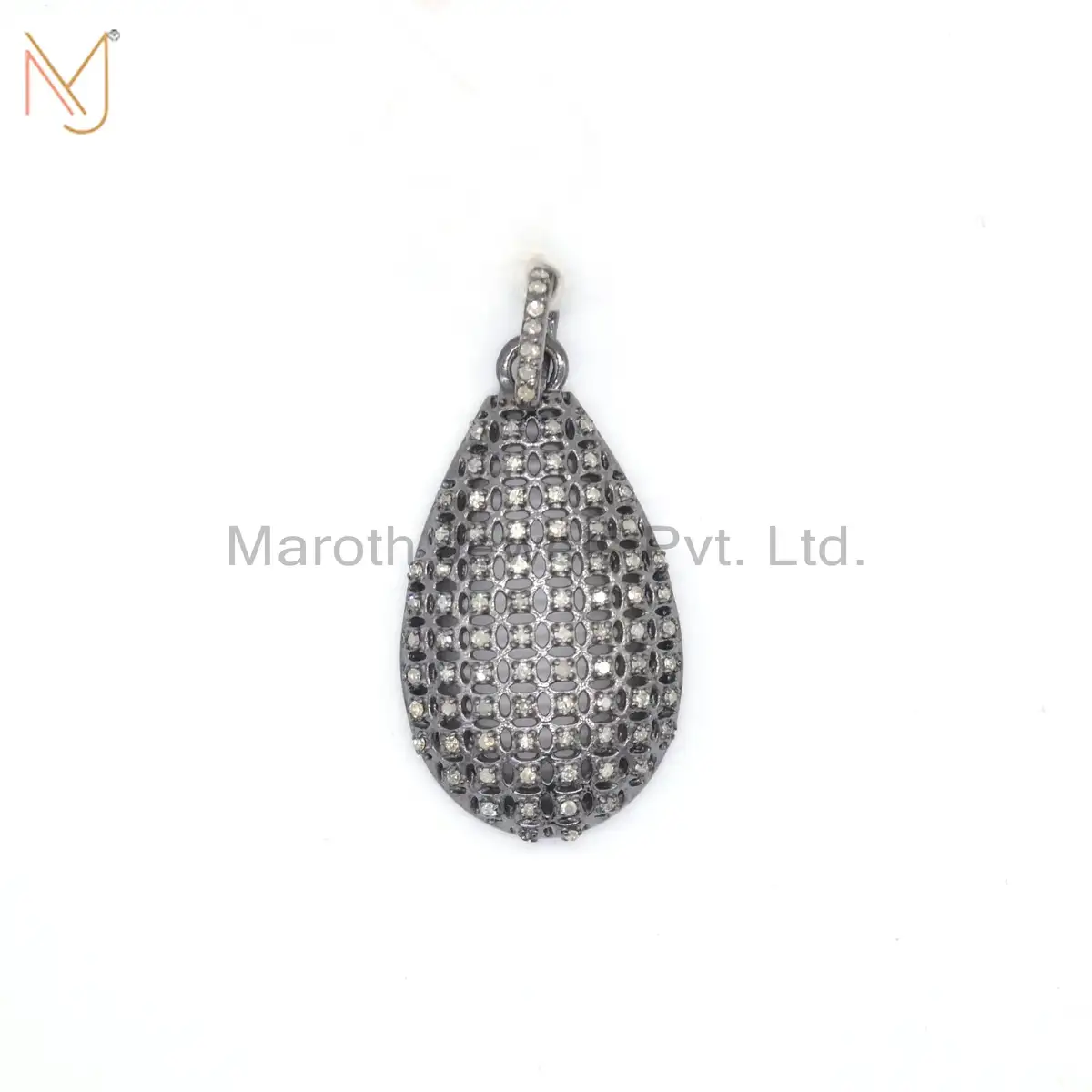 Private Lable 925 Silver Rhodium Plated Pave Diamond Bazel Pendant Jewelry