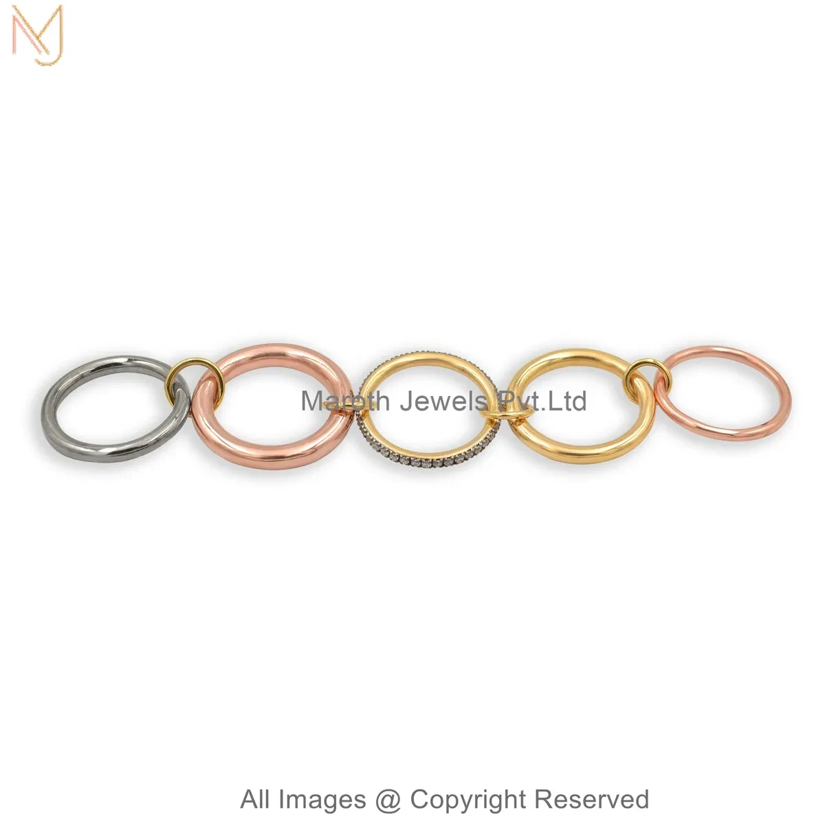 Private Lable 925 Silver Rhodium Plated Pave Diamond Cubic Zircon Gemstone Two Tone Multi Band Connector Ring