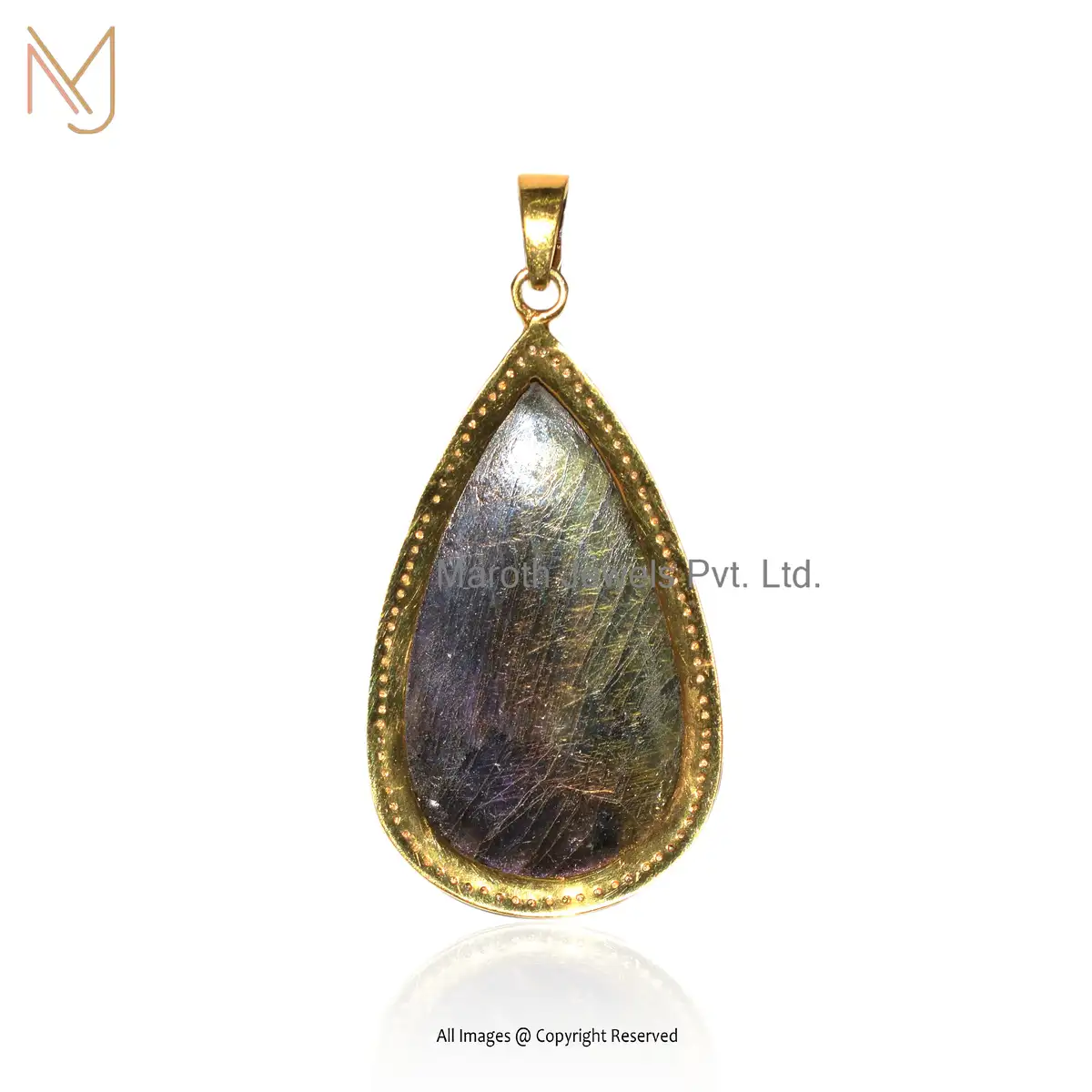 Private Lable 925 Silver Rhodium Yellow Gold Plated Diamond And Labradorite Gemstone Pear Design Pendant Jewelry