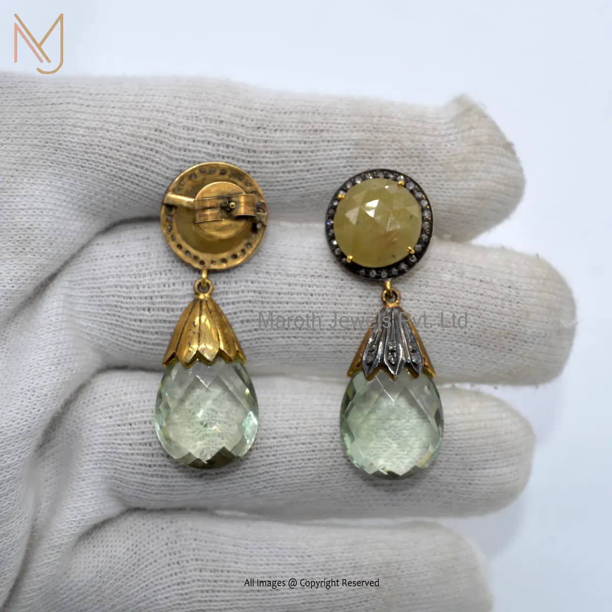 Private Lable 925 Silver Rhodium Yellow Gold Plated Pave Diamond And Yellow Sapphire Gemstone Dangle Earring