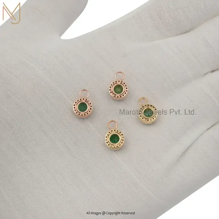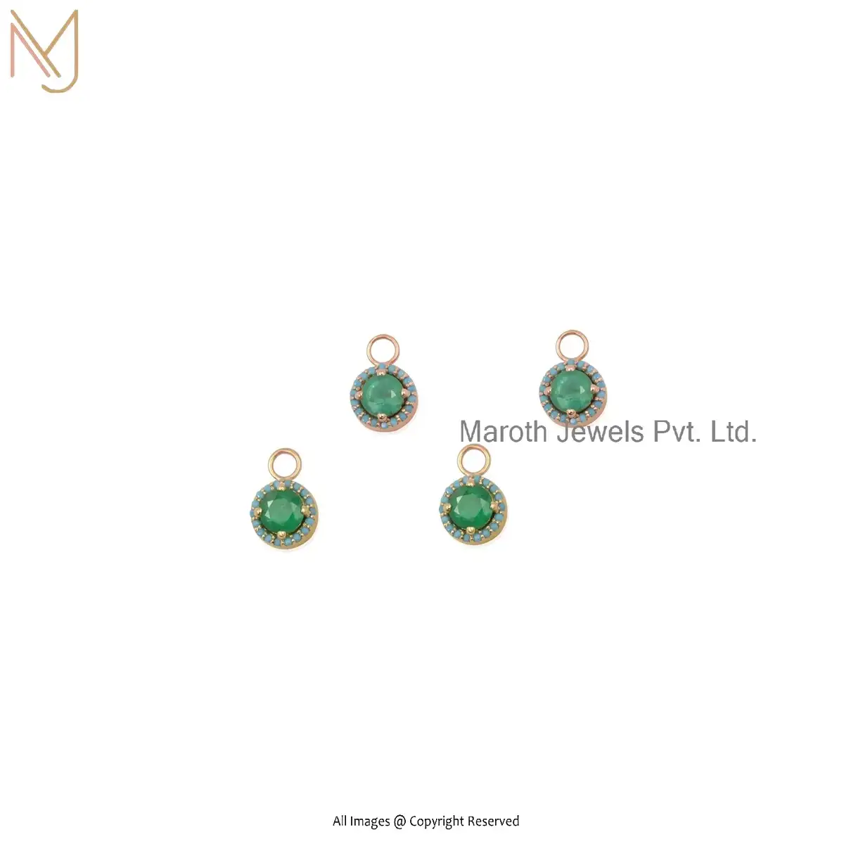 Private Lable 925 Silver Rose Gold Plated Emerald And Green Emerald Huggie Charms Pendant