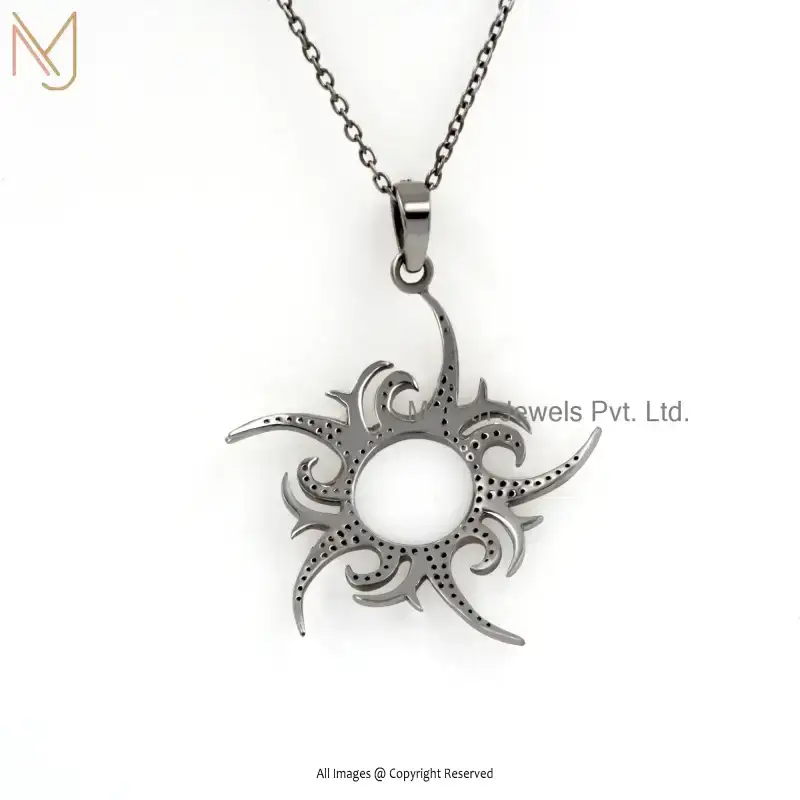 Private Lable 925 Silver White & Yellow Gold Plated Pave Diamond Sunburst Pendant Jewelry