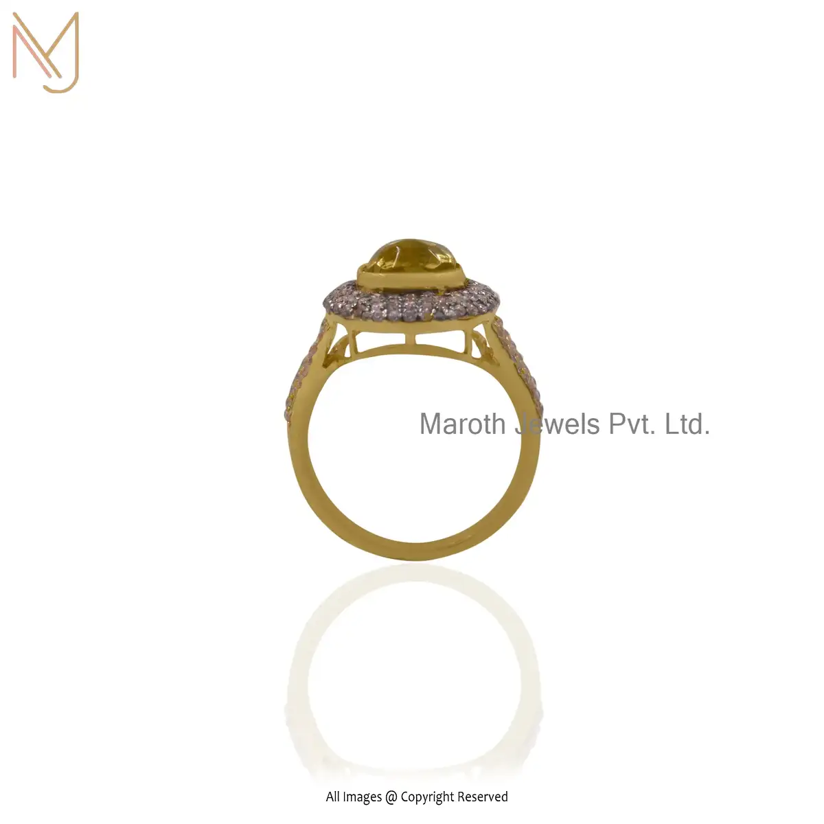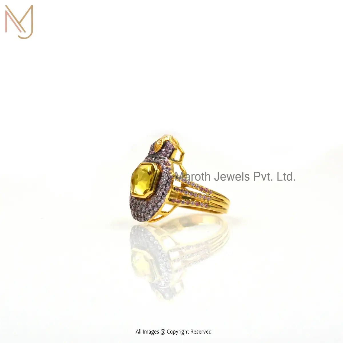 Private Lable 925 Silver Yellow Gold Cubic Zircon Gemstone Ring